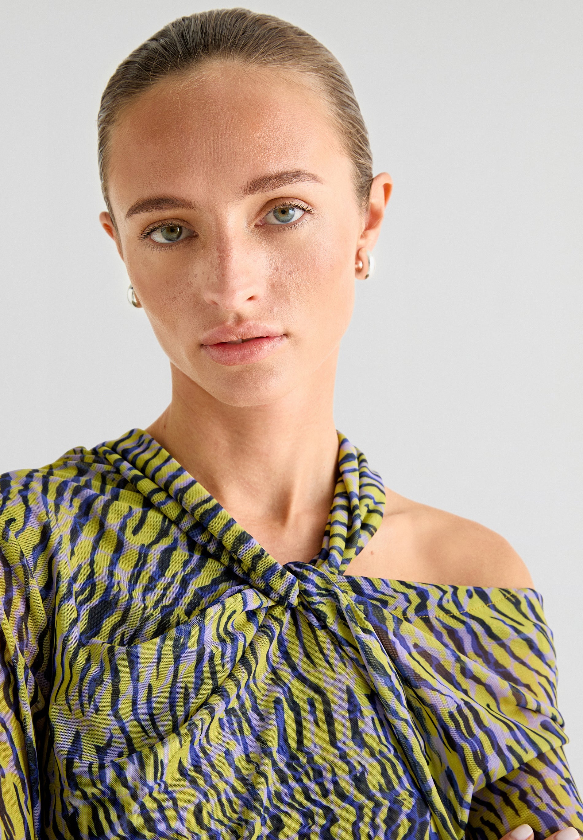 PRINTED ASYMMETRIC NECKLINE DRESS