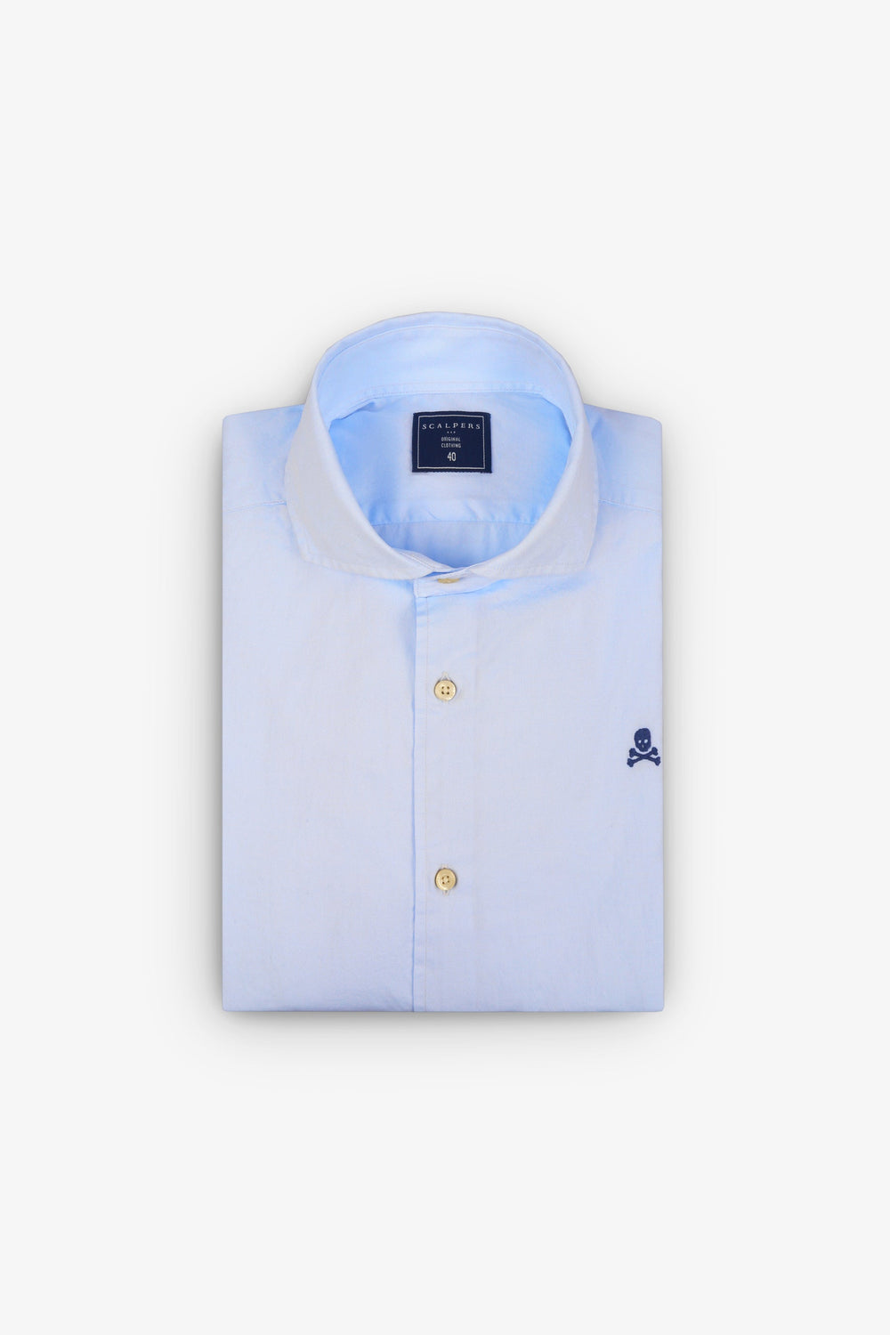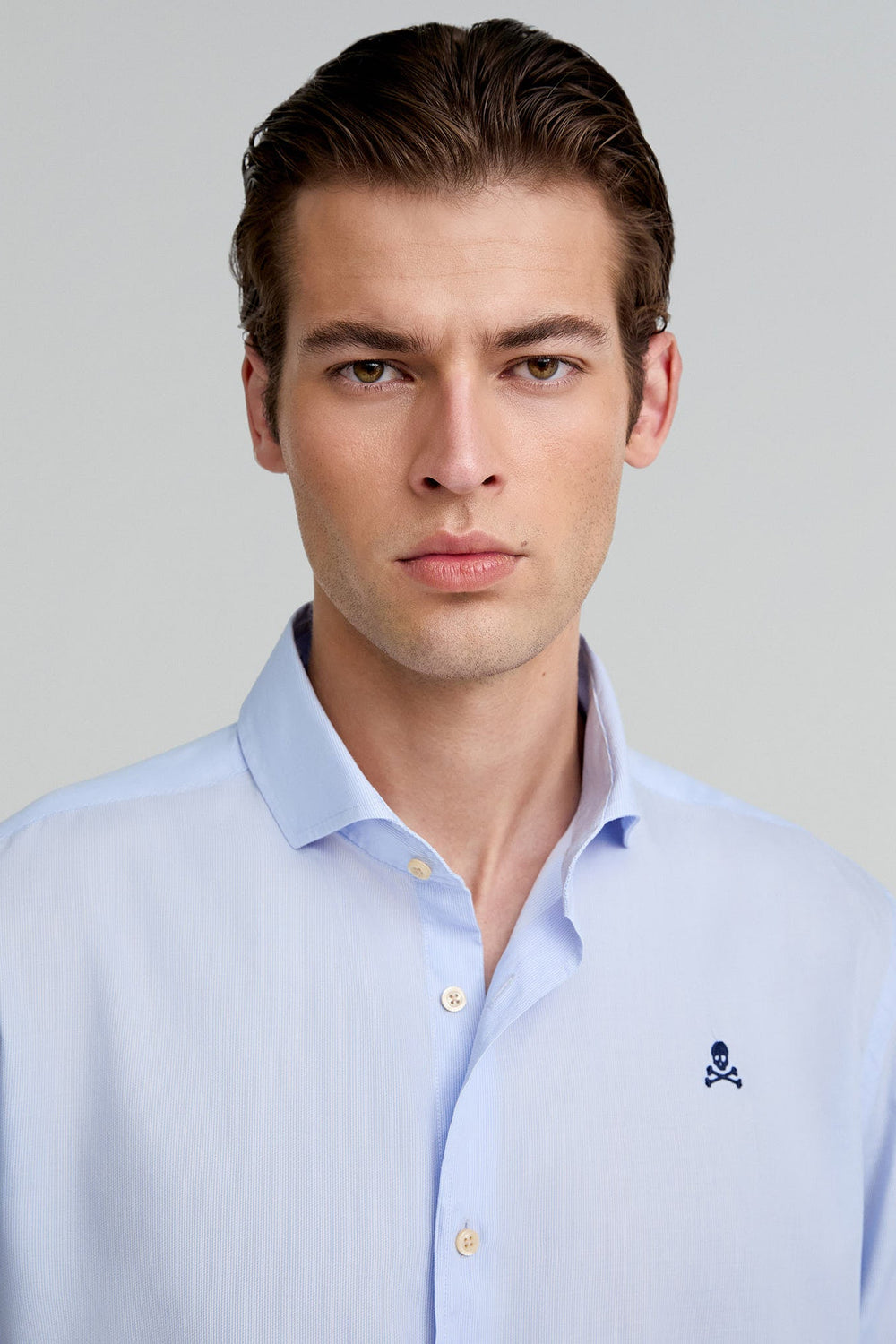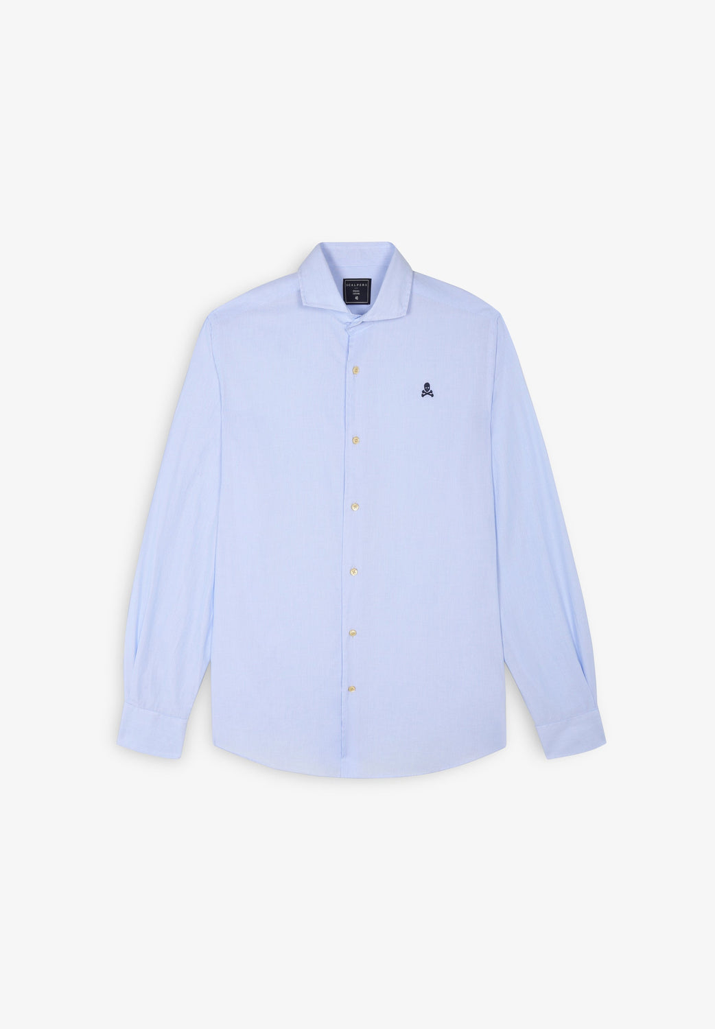Elegantes Hemd in Unifarben. Aus 100 % Baumwollgewebe. Regular Fit. Cutaway-Kragen. Knopfleiste. Lange Ärmel mit einfachen Bündchen. Verzierung mit gesticktem Totenkopf auf der Brust.