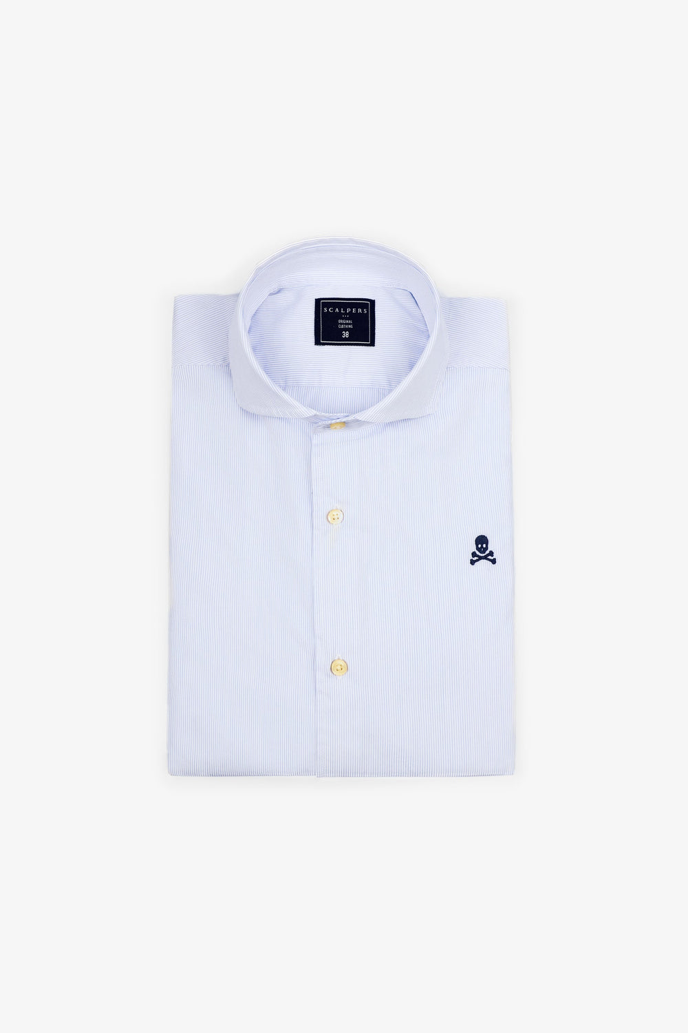 Plain formal shirt. Made of 100% cotton. Regular fit. Cutaway collar. Button fastening. Long sleeves with barrel cuffs. Embroidered skull detail on the chest.