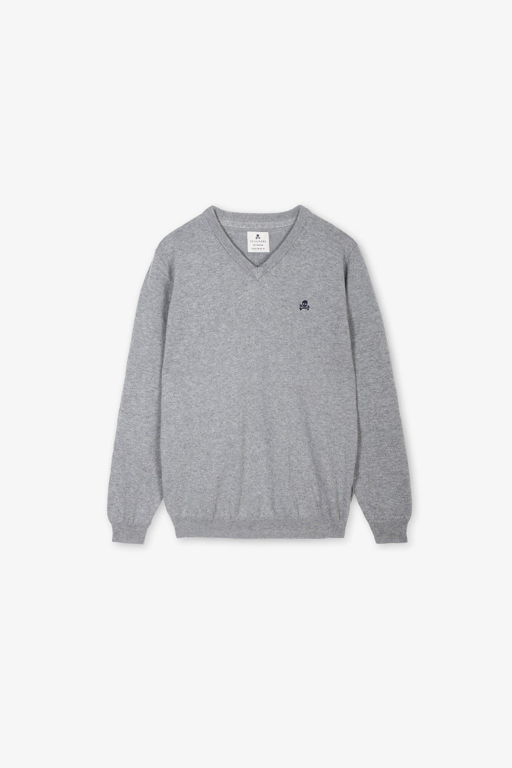 Sweater with contrast embroidered skull detail. Crafted from a cotton and cashmere blend, featuring a regular fit, V-neck and long sleeves.