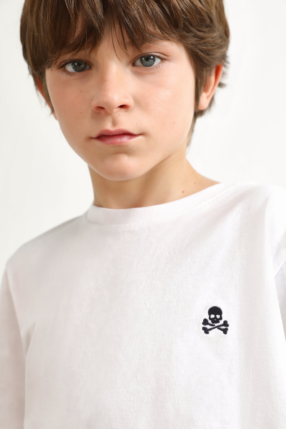 Basic T-shirt crafted from 100% BCI cotton with a regular fit, round neck and short sleeves. Embroidered skull detail.