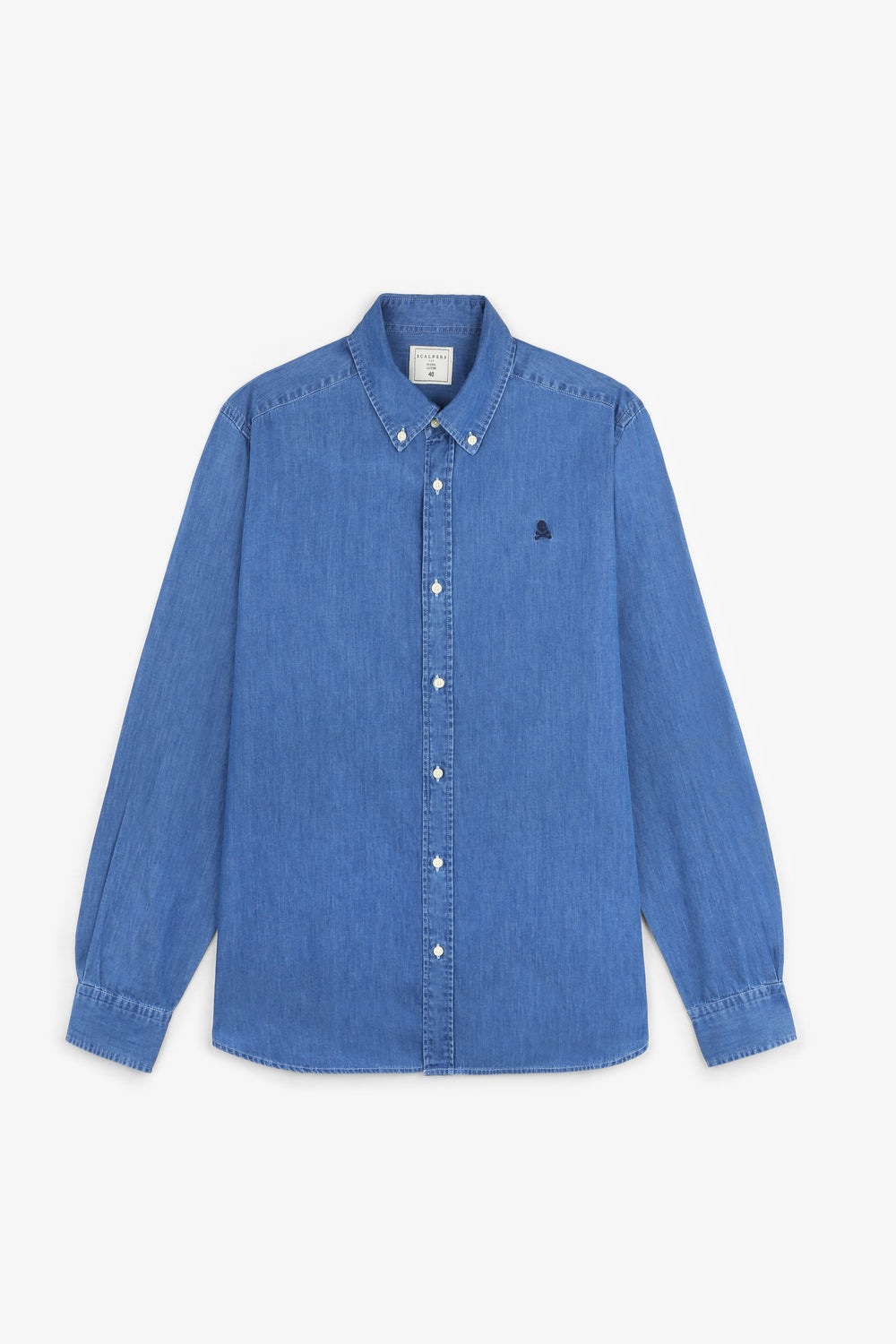 Klassisches Hemd mit farblich abgesetzter Totenkopfstickerei.