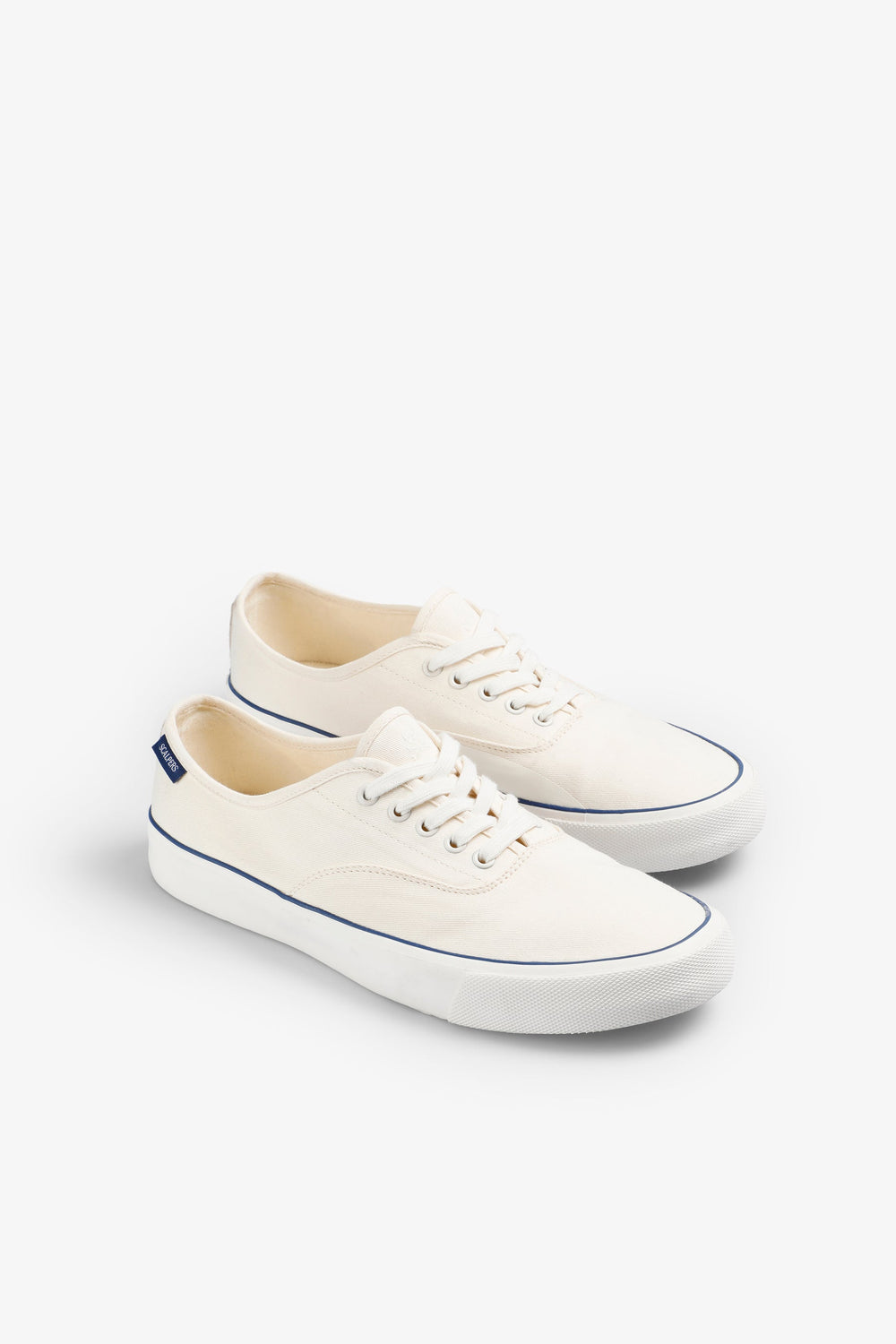 Niedrige Sneaker aus Kanvas. Mit Schnürung und vulkanisierter Sohle. Logo-Etikett auf der Rückseite.