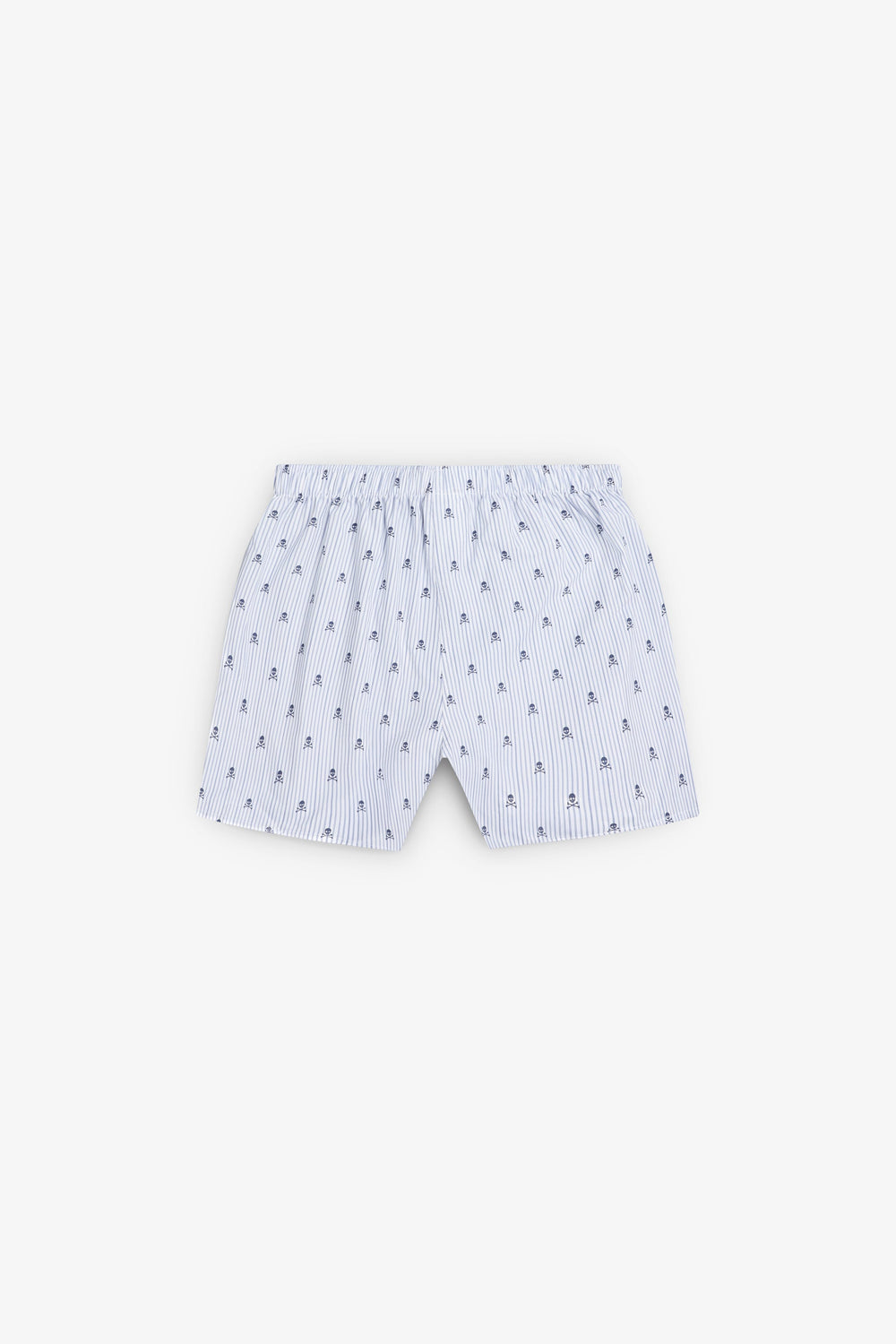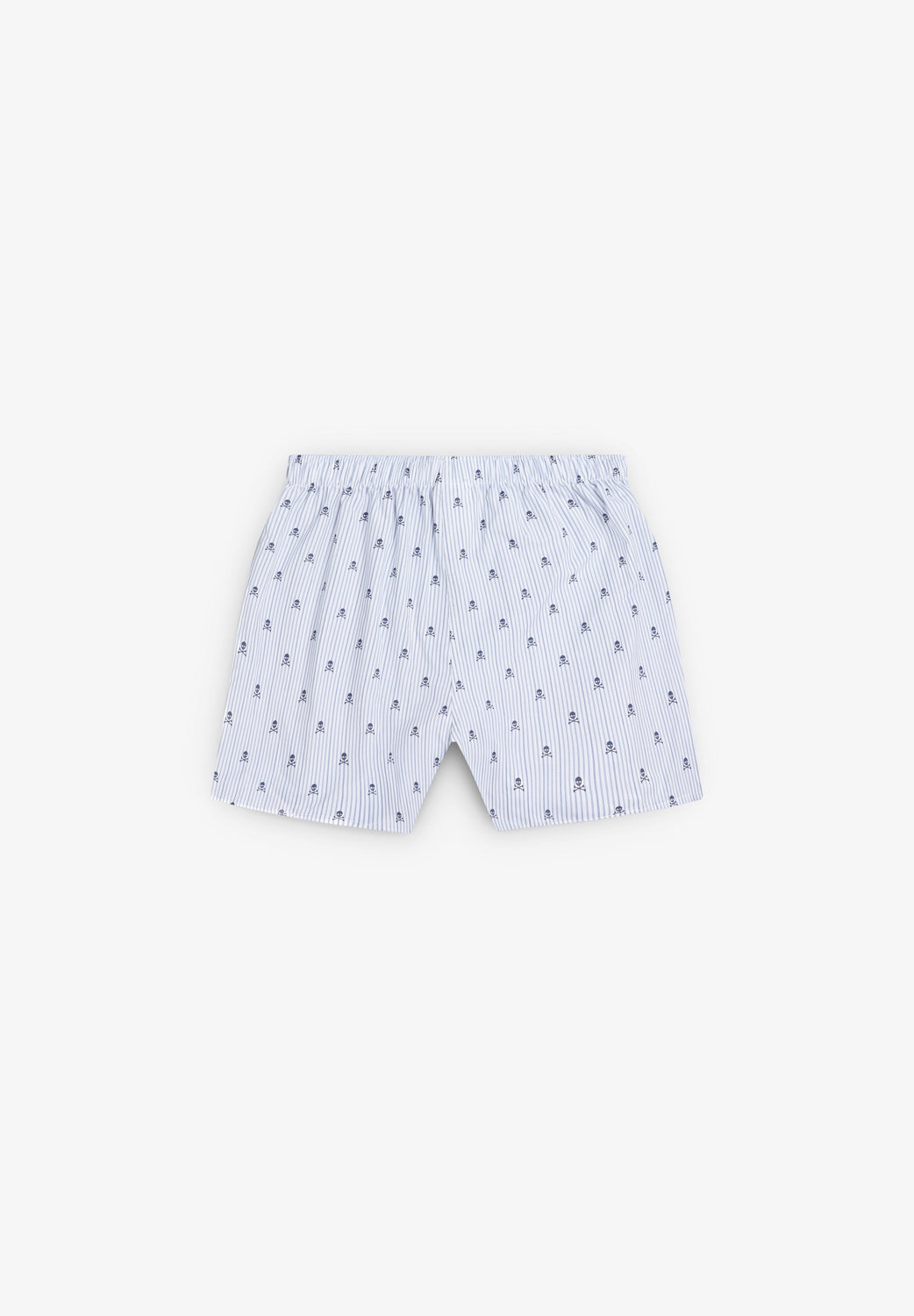 Boxershorts aus 100% Bio-Baumwolle mit Aufdruck, elastischem Bund und Stoffetikett vorne.