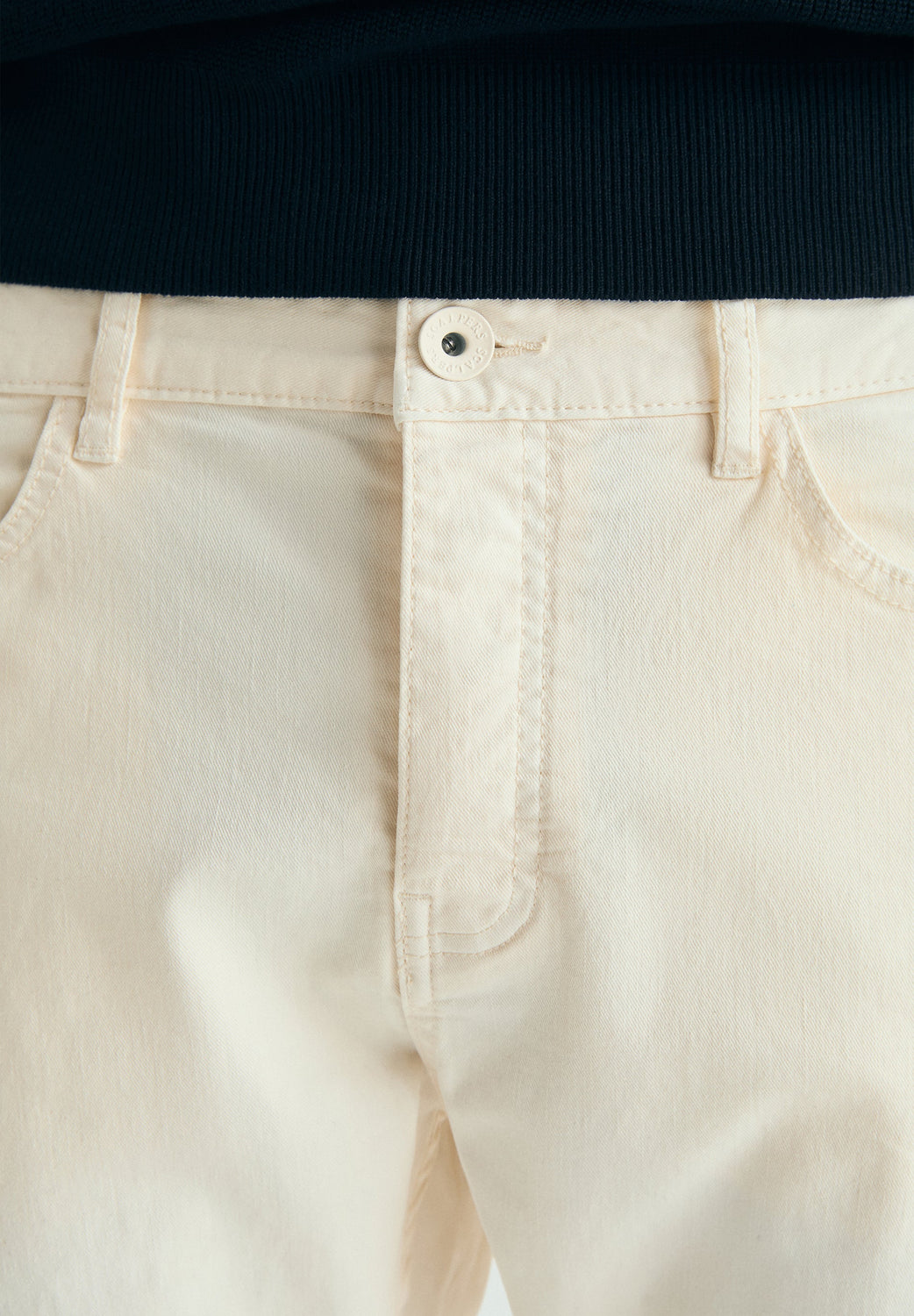 Hose aus einer Baumwollmischung. Leicht elastisch. Knopfleiste. Regular Fit. Seiten- und Gesäßtaschen Mit Gürtelschlaufen.