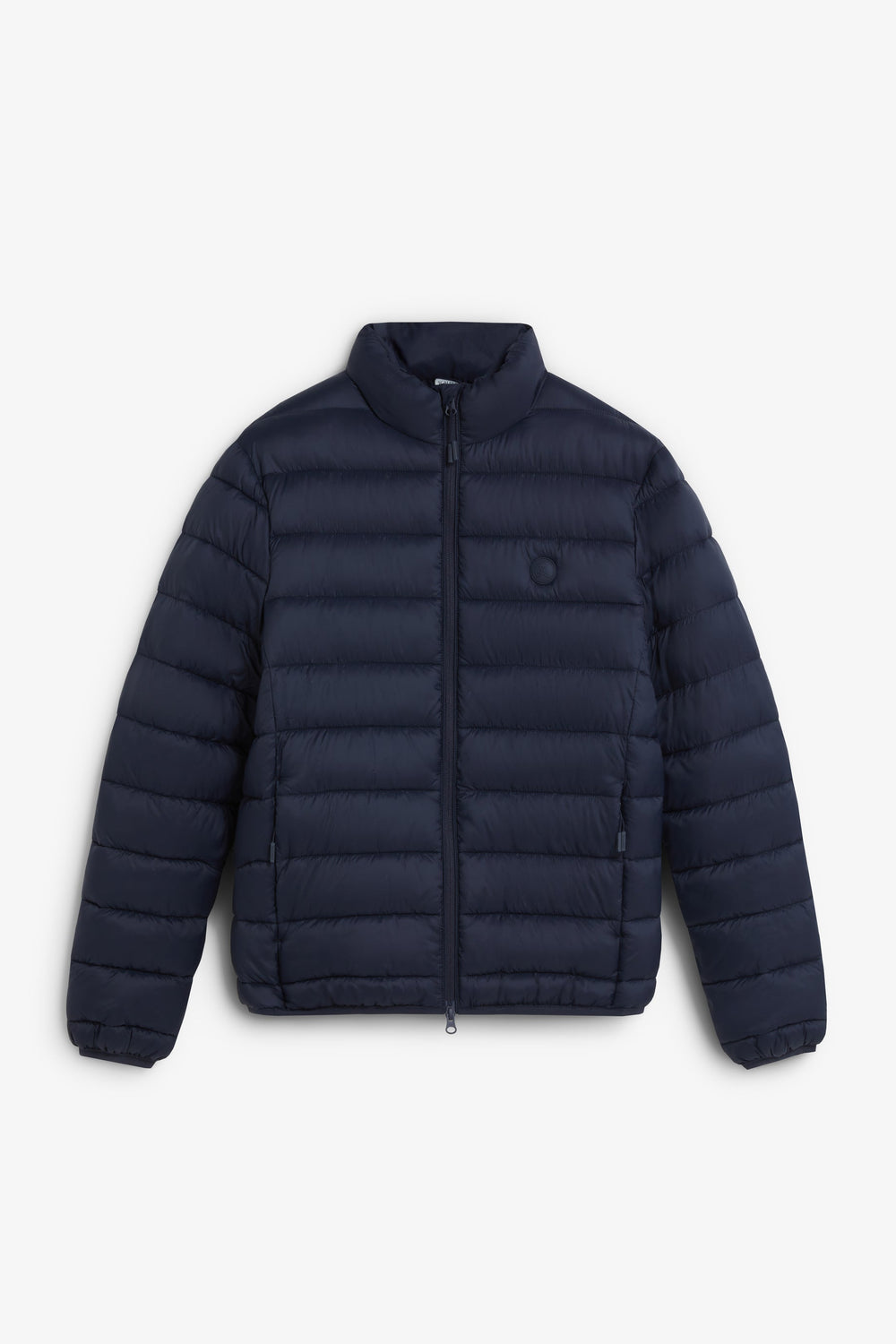 Steppjacke. Wasserabweisend. Innenfütterung aus technischem Gewebe. Verdeckte Seitentaschen mit Fleecefütterung. Reißverschluss mit graviertem Wendeschieber. Gummierter Aufnäher mit farblich passendem Logo auf der Brust.
