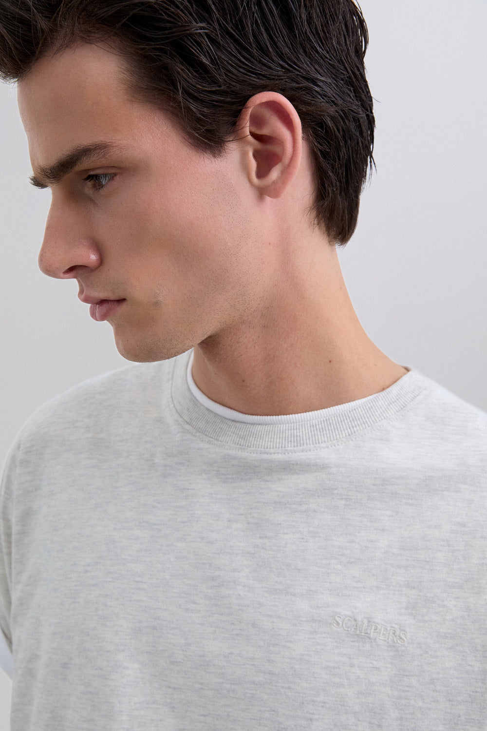 T-Shirt aus 100 % ökologisch hergestellter Baumwolle. Regular Fit. Kurze Ärmel. Rundausschnitt. Verwaschene Optik. Farblich passende Logostickerei auf der Brust. Rippenstrick-Kragen.