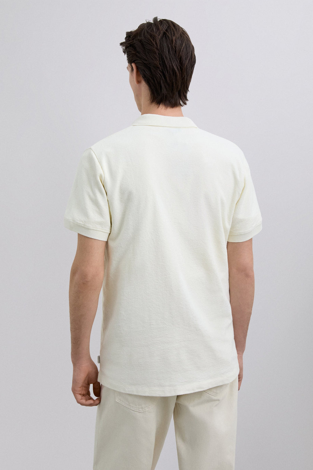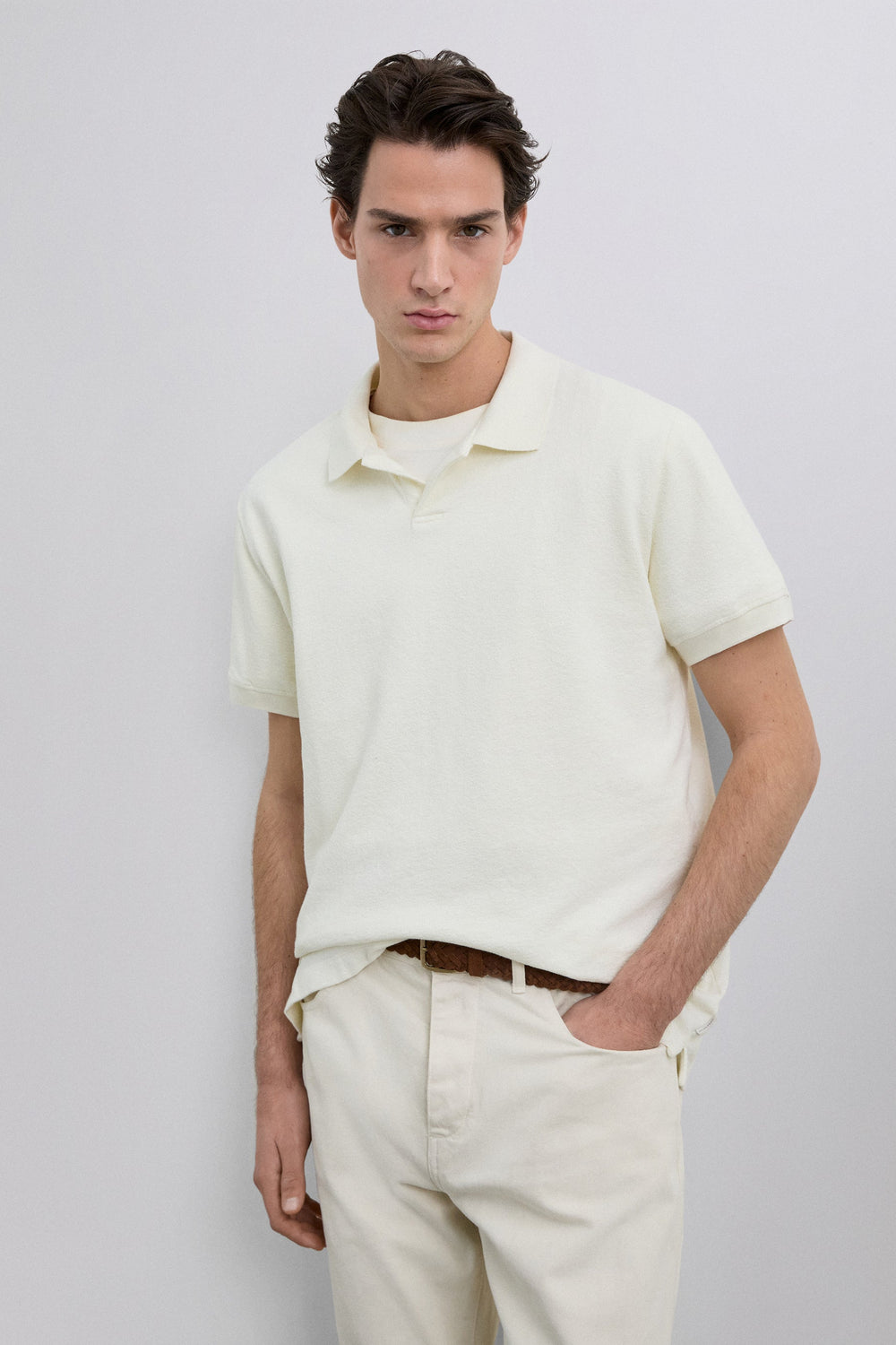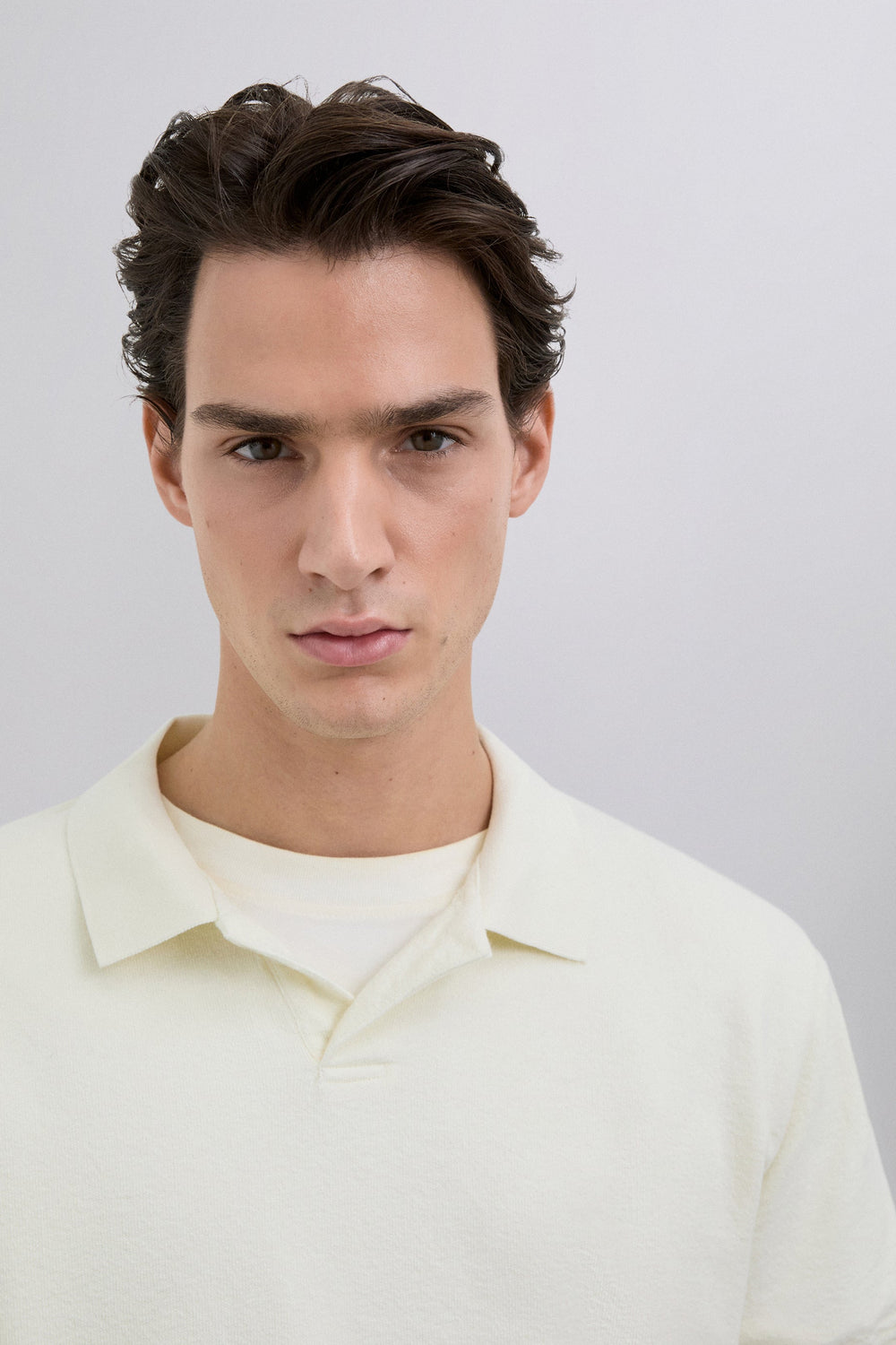 Kurzarm-Poloshirt aus rustikalem Strick. Regular Fit. Offener Kragen und Rippenstrick-Bündchen.