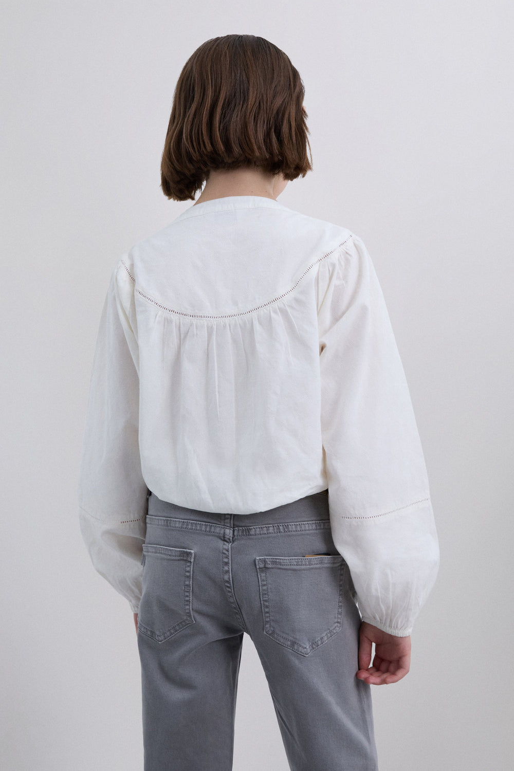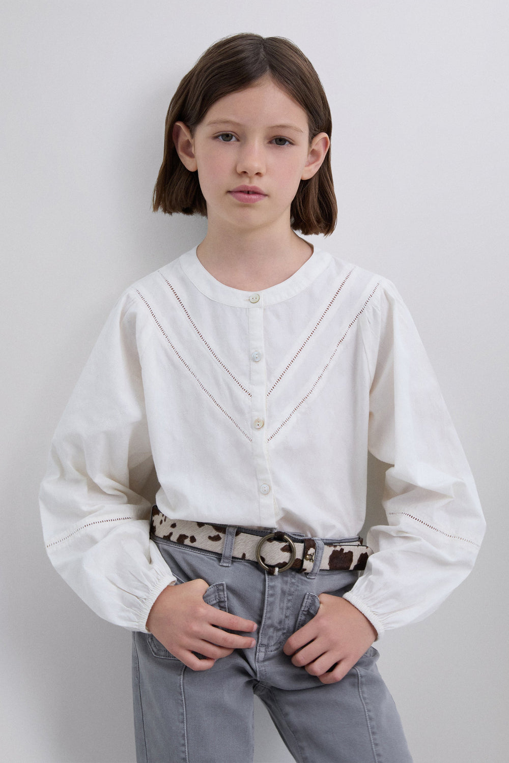 Hemd aus 100 % Baumwolle. Hemd mit Rundhalsausschnitt und langen Ärmeln mit elastischen Bündchen. Knopfleiste vorne. Gestanztes Spitzendetail.