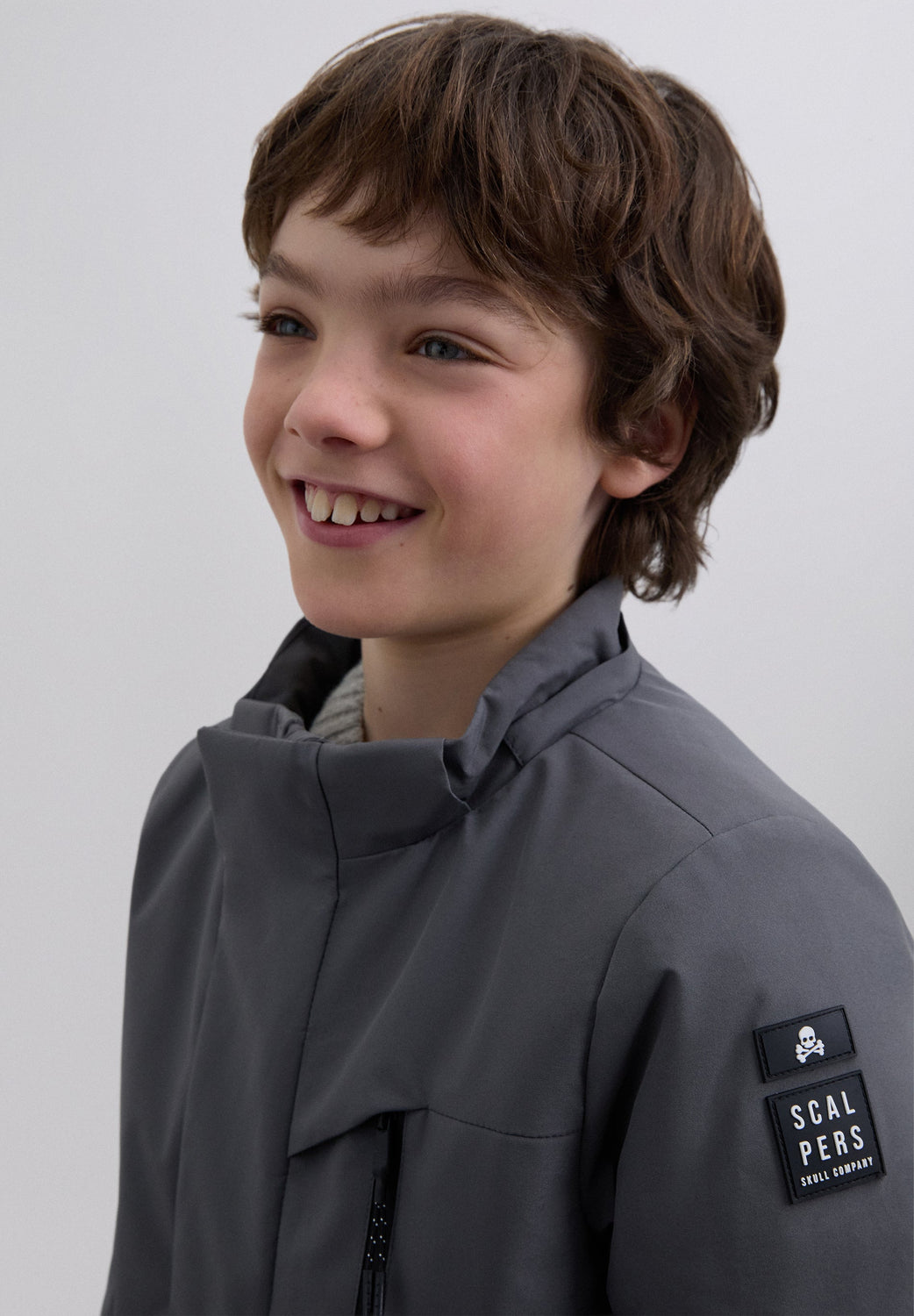 Langer Parka aus technischem wiederverwertetem Gewebe. Regular Fit, thermoversiegelter Reißverschluss mit Patte und Kragen mit Kapuze. Lange Ärmel und thermoversiegelte Reißverschlusstaschen. Gummierter Aufnäher an der Seite.