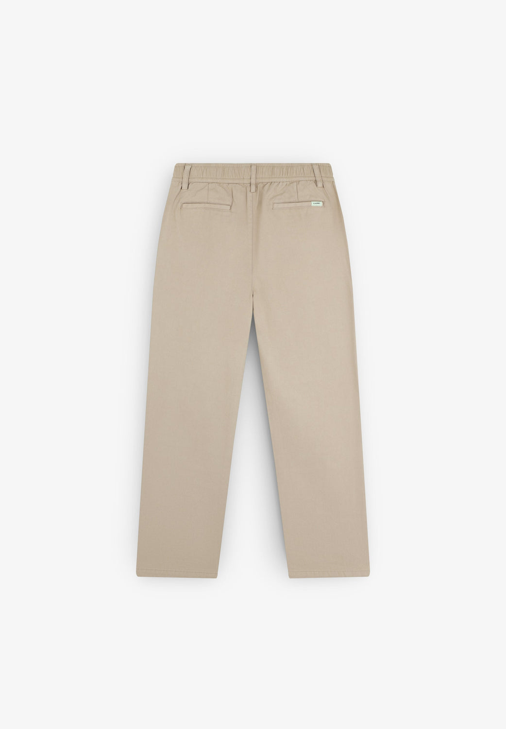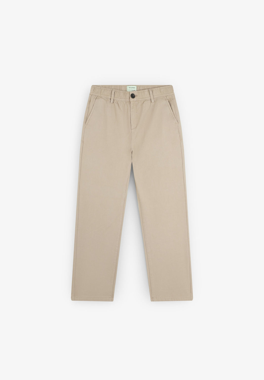 Chinohose aus 100 % BCI-Baumwolle Zwei Vordertaschen und Gesäßtaschen. Knopfverschluss und Schnallen am Bund. Logo-Etikett auf der Tasche.