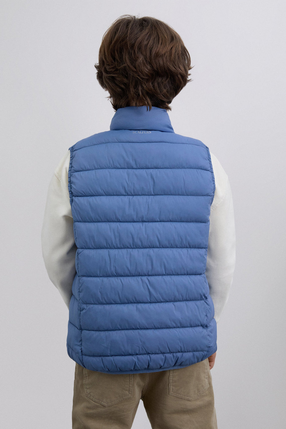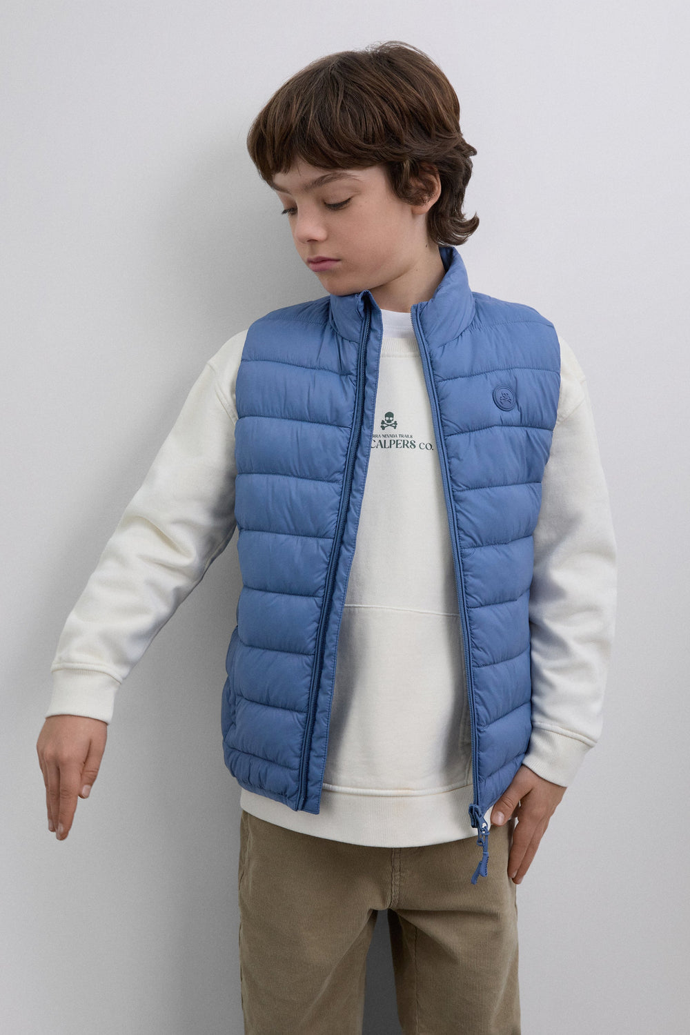 Steppweste aus wiederverwertetem Polyester. Regular Fit. Stehkragen. Reißverschluss und Seitentaschen.