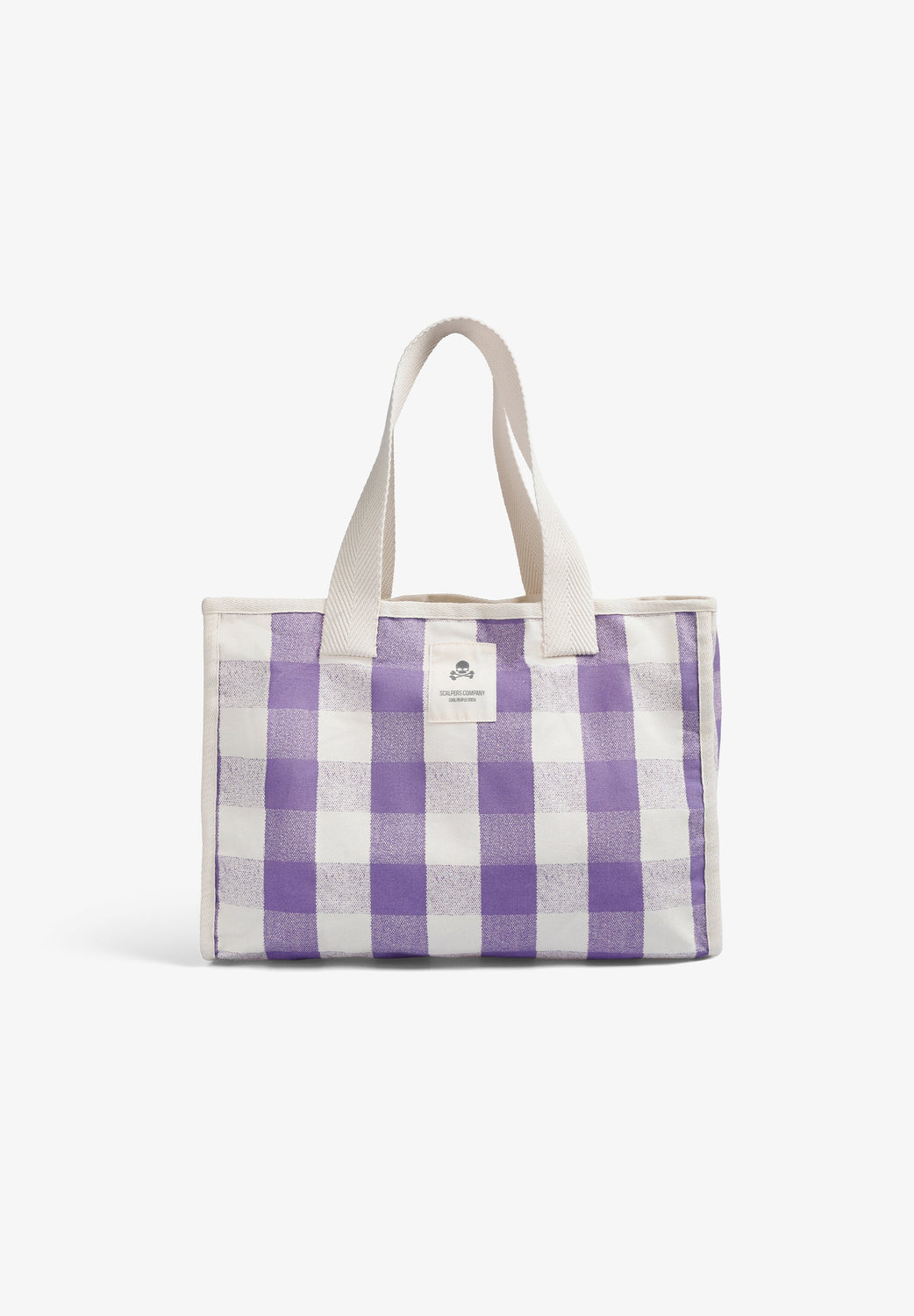 Shopper-Tasche aus 100 % Baumwolle. Doppelter Tragegurt. Etikett mit Logo und Totenkopf vorne. Karo-Print