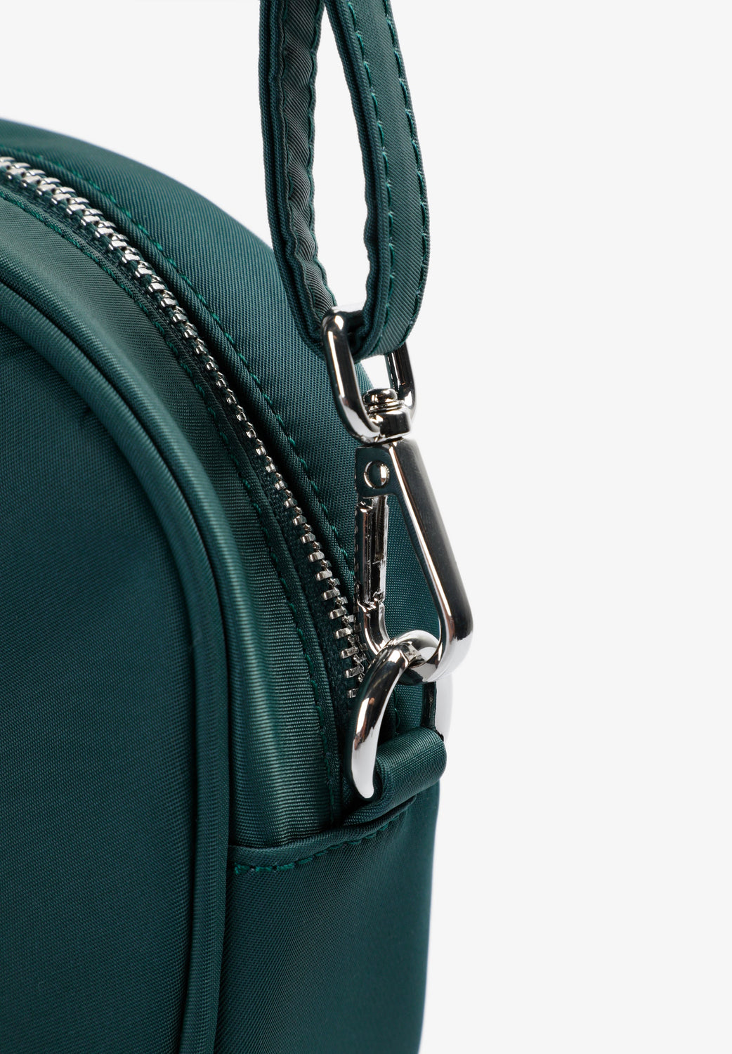 Tasche aus 100 % Nylon mit Innenfütterung aus Baumwolle. Verstellbarer und abnehmbarer Umhängegurt. Mit Innentaschen. Etikett mit Monogramm-Stickerei auf der Vorderseite. Reißverschluss. Abnehmbares Charm-Detail am Verschluss.