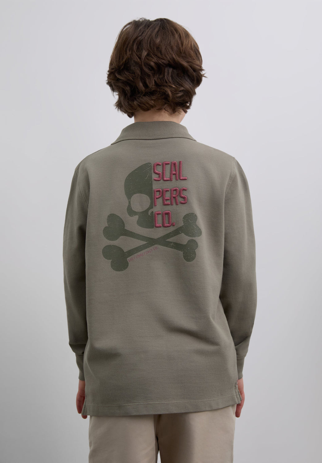 Poloshirt aus 100 % BCI-Baumwolle. Regular Fit. Lange Ärmel. Klassischer Kragen mit Knöpfen. Logo-Stickerei auf dem Rücken und Totenkopf-Print. Aufnäher-Stickerei vorne auf der Unterseite.