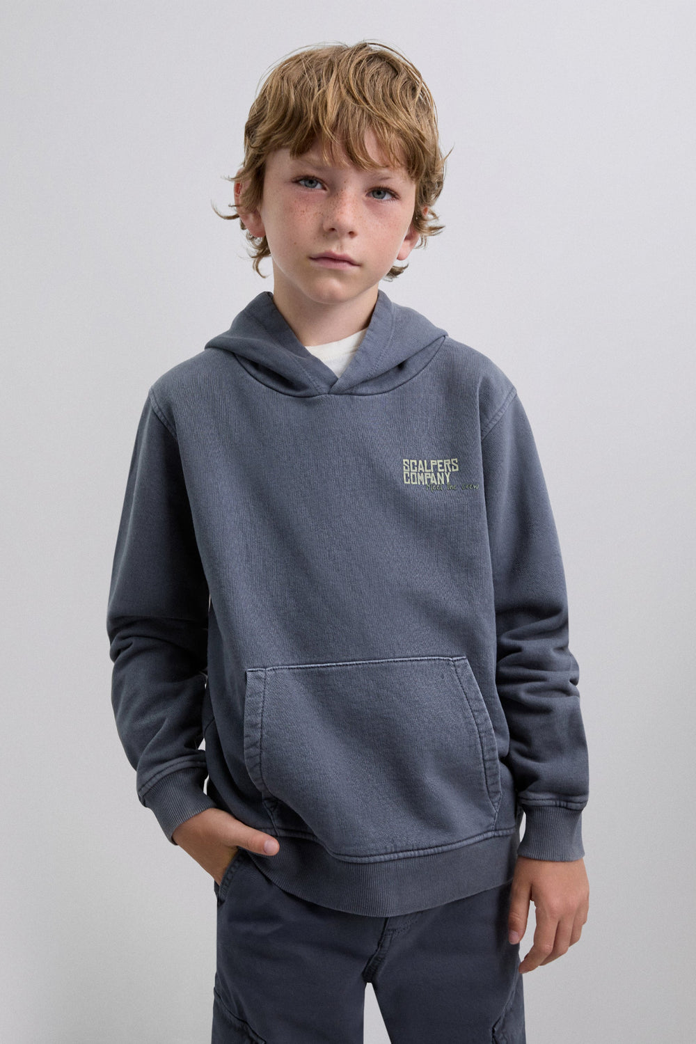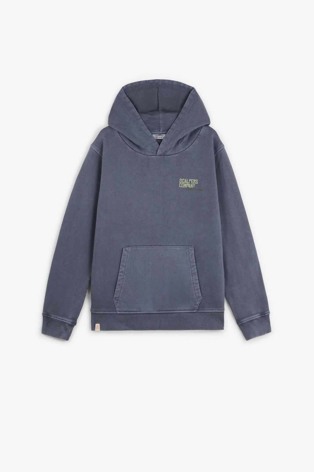 Hoody aus 100 % BCI-Baumwolle mit Kapuze. Print auf Brust und Rücken. Lange Ärmel mit Patentbündchen. Kängurutaschen vorne. Totenkopf-Etikett am Bund.