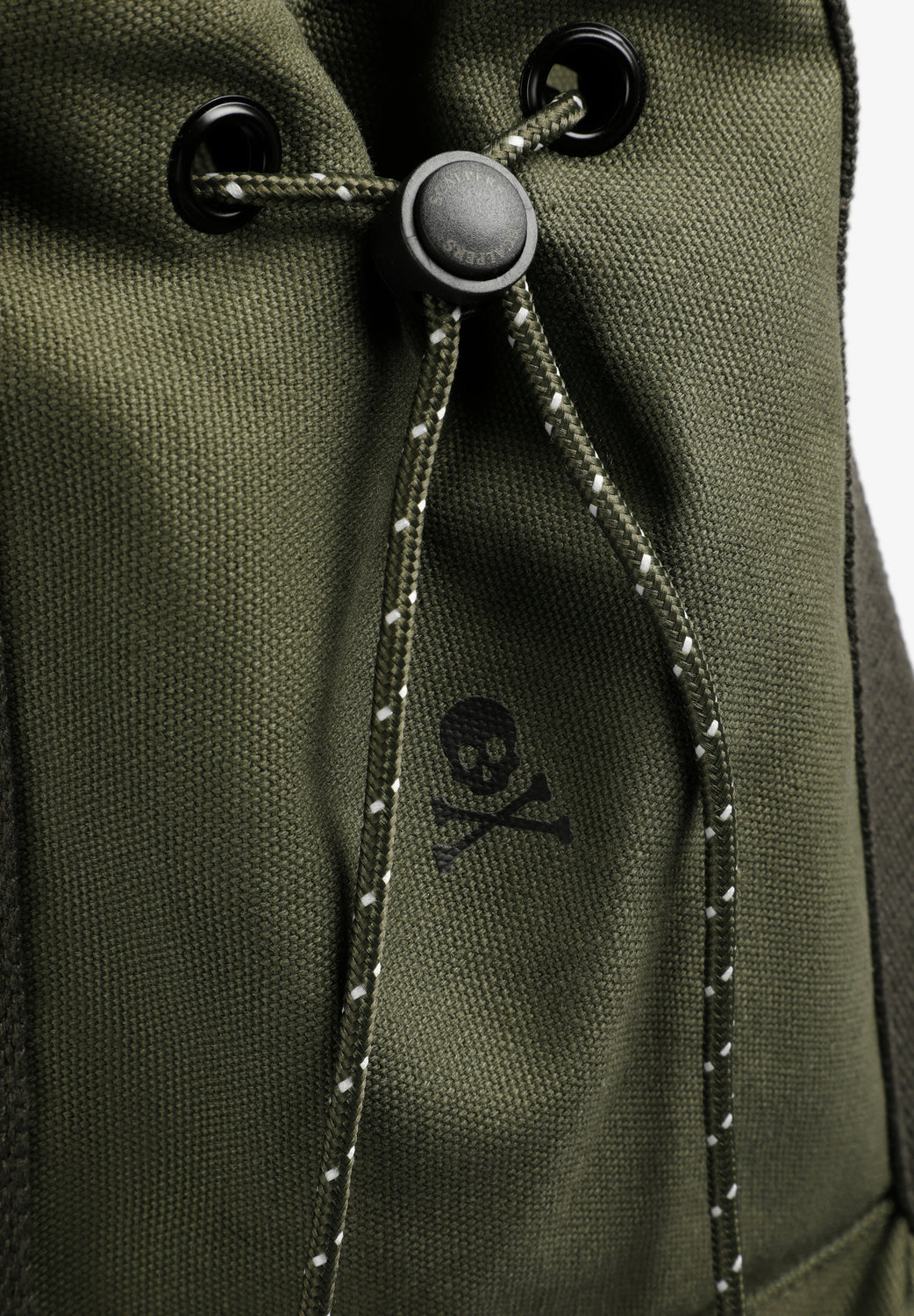 Tasche aus 100 % Baumwolle. Doppelter Tragegurt. Verstellbarer Reißverschluss, Innentasche und Außentasche mit Faltenbalg. Totenkopf und farblich abgesetztes Logo.