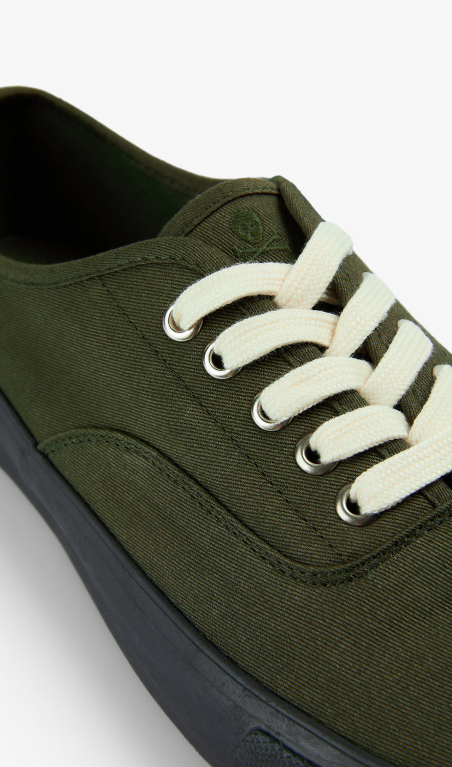Niedrig geschnittene Sneaker mit Kanvas-Obermaterial. Mit Verstärkungen aus Rindsveloursleder für zusätzliche Widerstandsfähigkeit. Innenfütterung. Flache Kautschuksohle. Logo an der Fersenkappe. Farblich passender Totenkopf auf der Zunge.