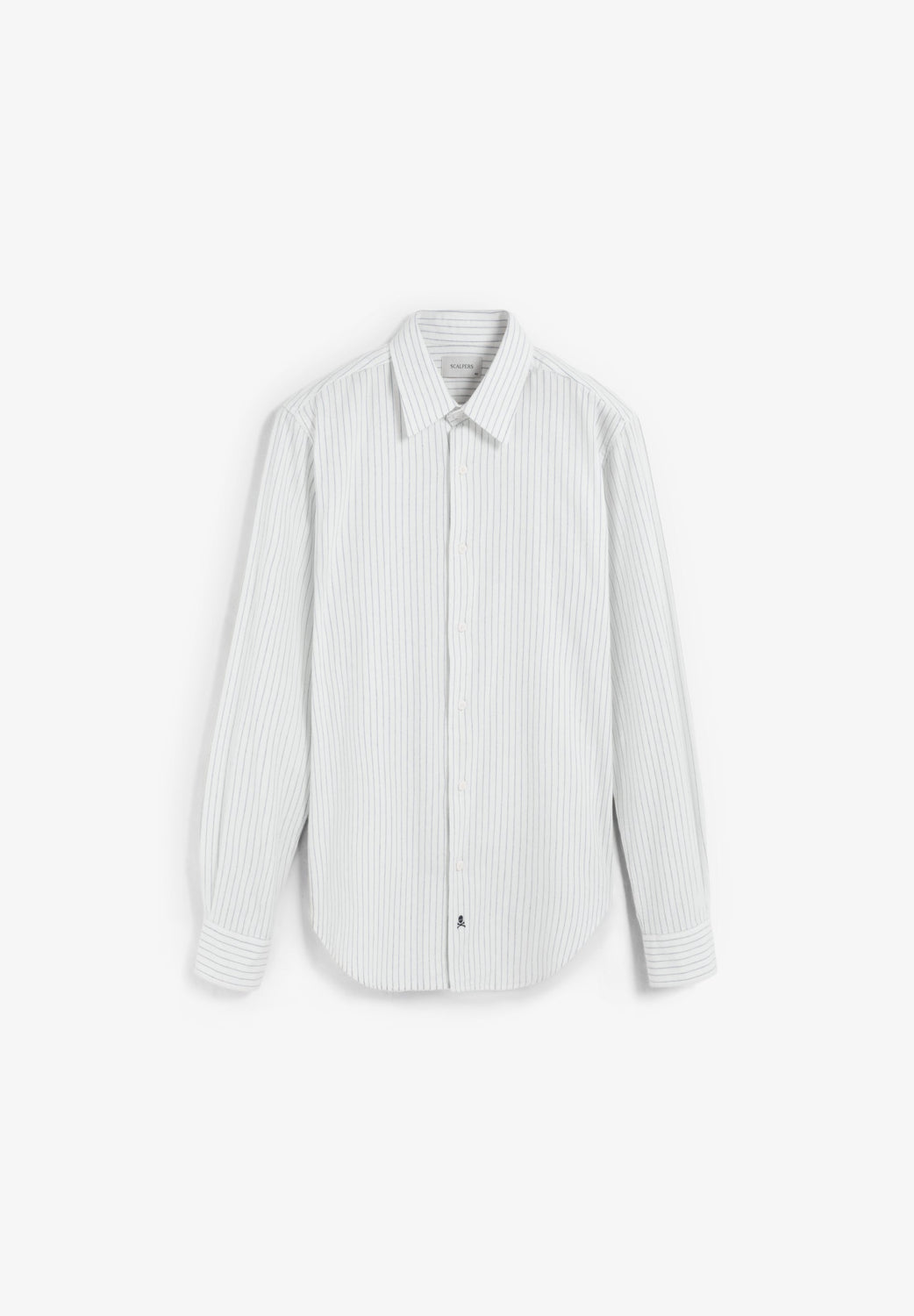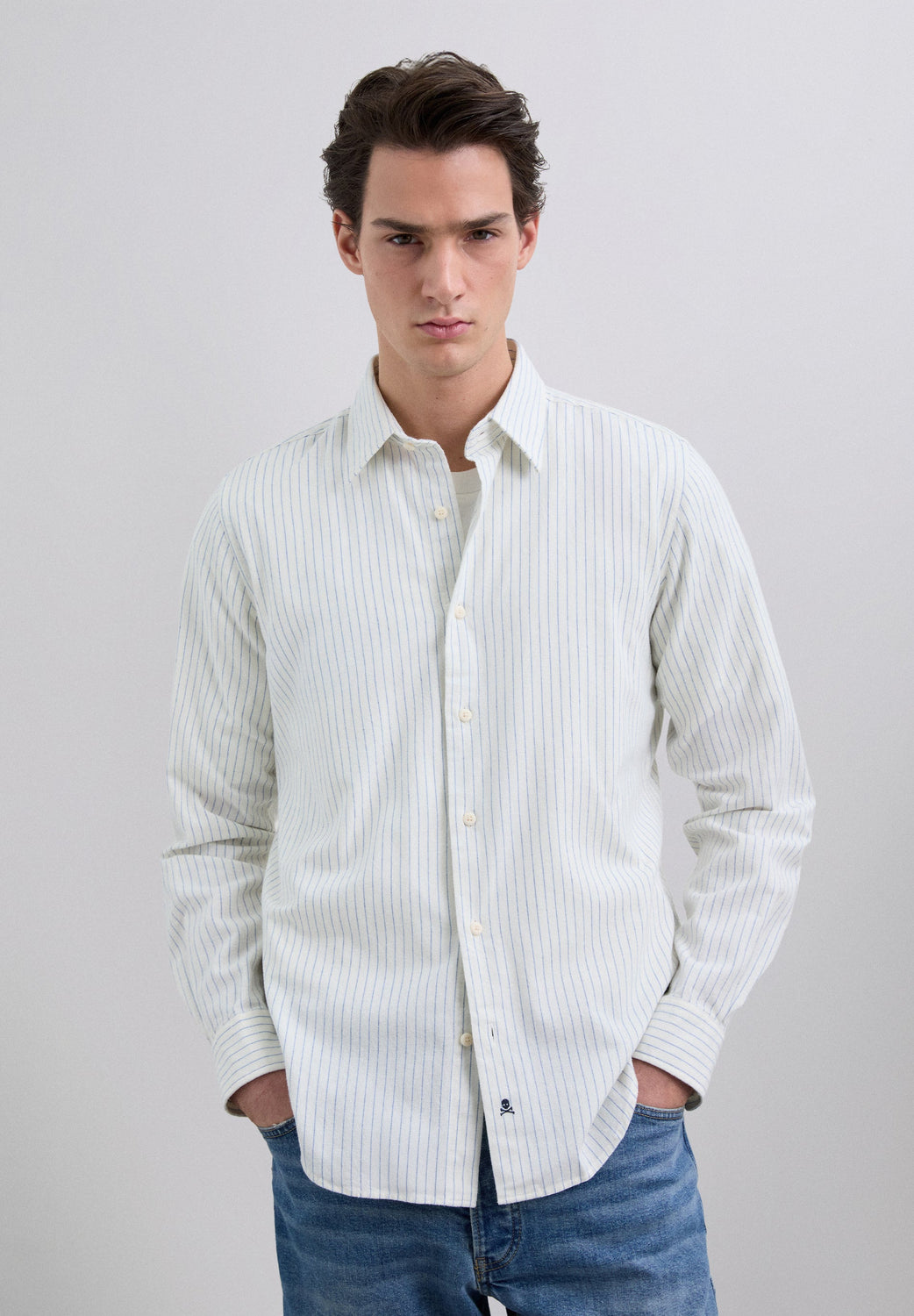 Hemd aus 100 % BCI-Baumwolle. Klassischer Kragen. Lange Ärmel. Streifen-Print. Farblich abgesetzte Totenkopfstickerei. Knopfverschluss auf der Vorderseiteund an Manschetten. Aufgeraut. Regular Fit.