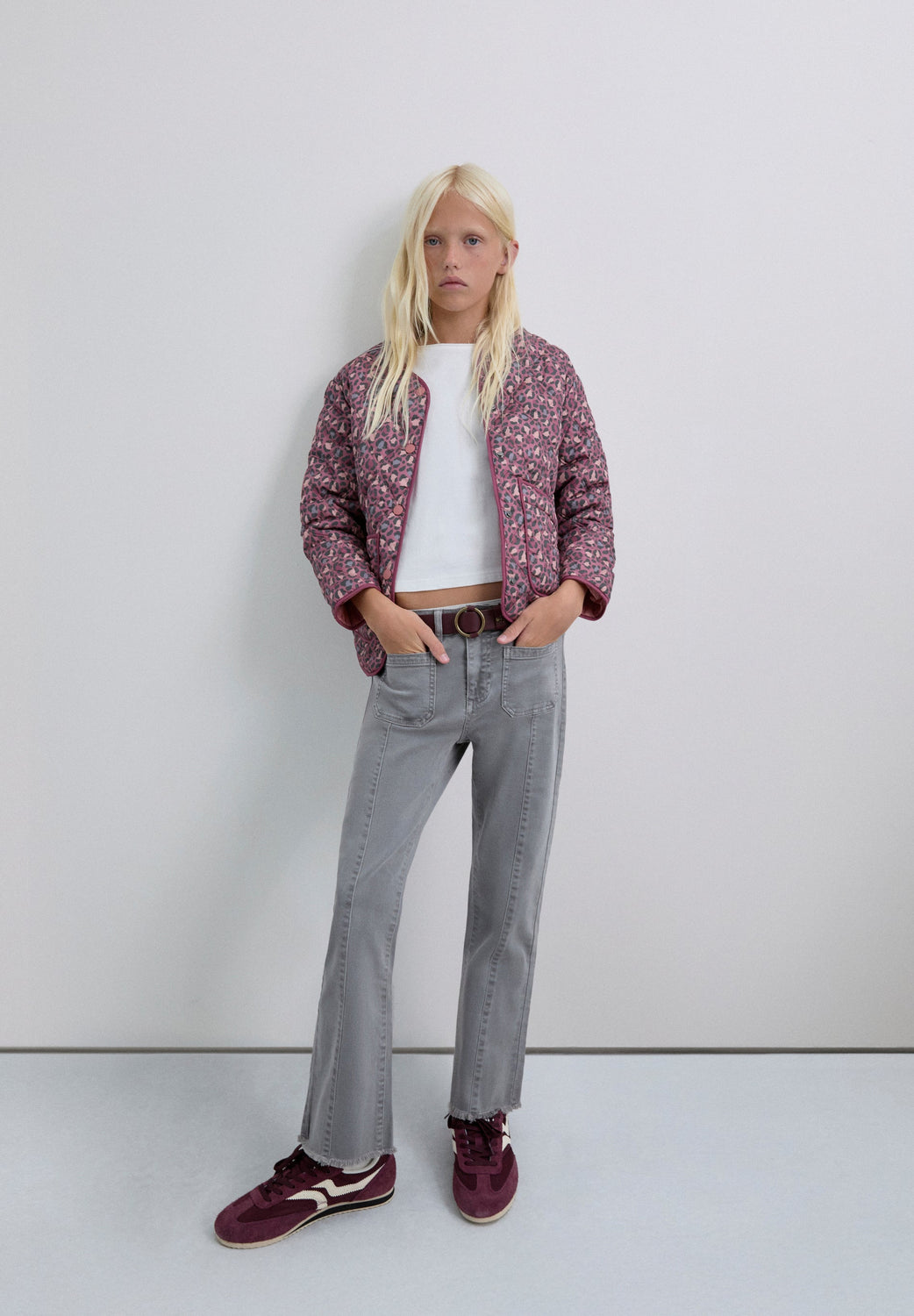 Steppjacke mit Synthetik. Animal-Print. Knopfverschluss. Leichter V-Ausschnitt, lange Ärmel. Zwei Vordertaschen.
