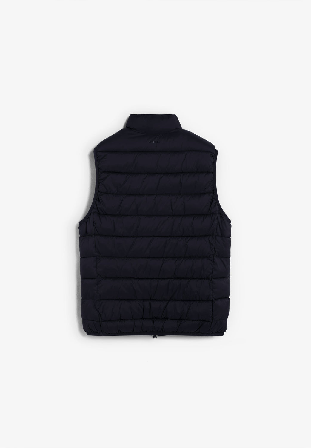 Aus Nylon-Gewebe und wiederverwertetem Polyester. Slim-Fit. Hoher Kragen. Reißverschluss mit Wendeschieber. Taschen mit Reißverschluss und Innentasche. Logo-Detail auf der Brust.