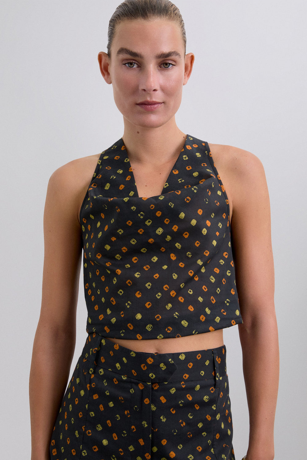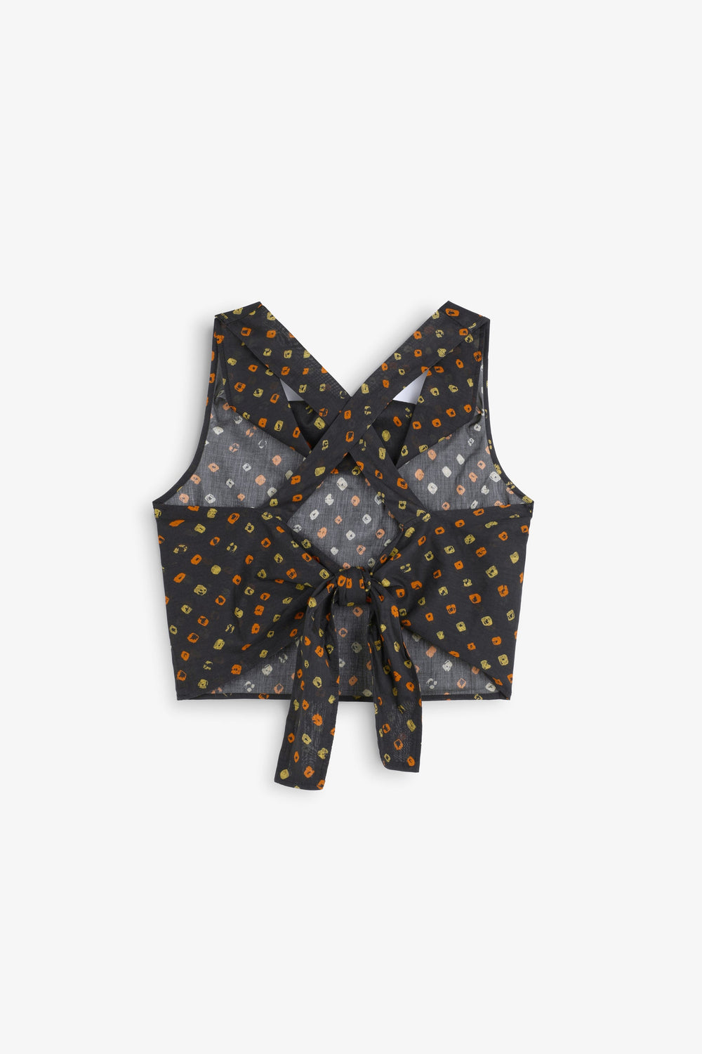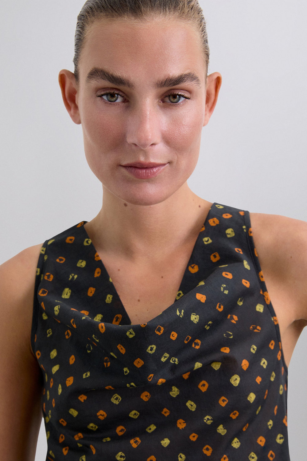 Top aus 100 % BCI-Baumwollgewebe mit Print. Regular Fit, V-Ausschnitt, Schlitz auf dem überkreuzten Rücken und ärmellos.