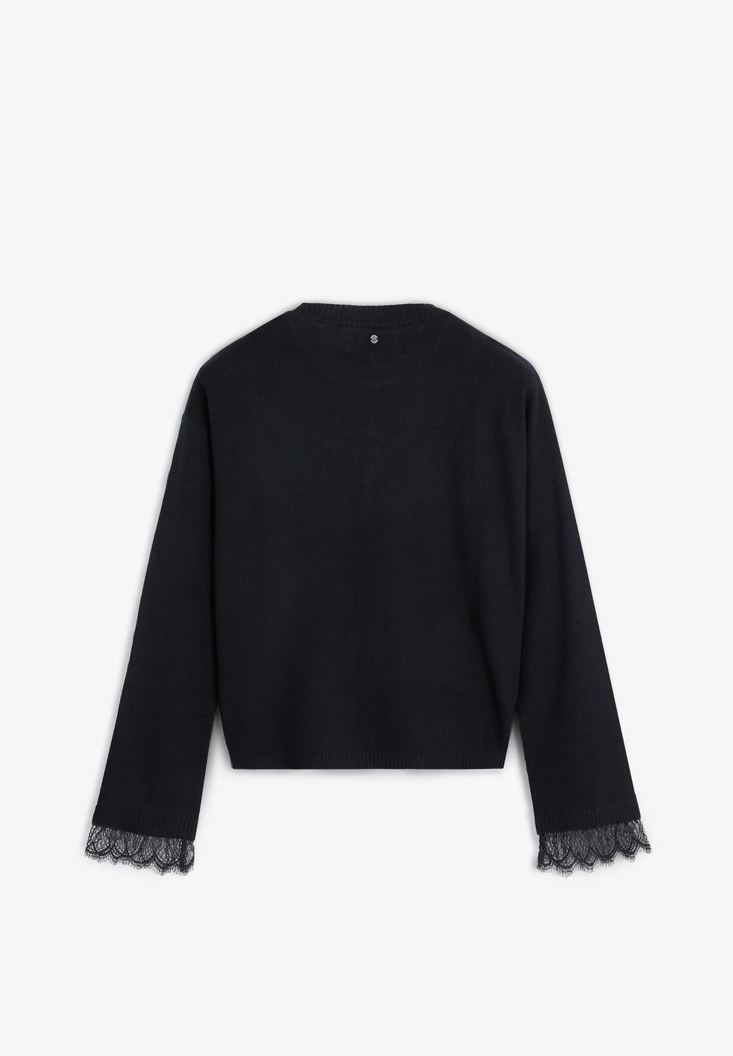 Pullover aus Wolle und Polyamid. Regular Fit. Rundausschnitt, lange Ärmel und Patentbündchen. Spitzendetails auf der Brust und am Ärmelende.