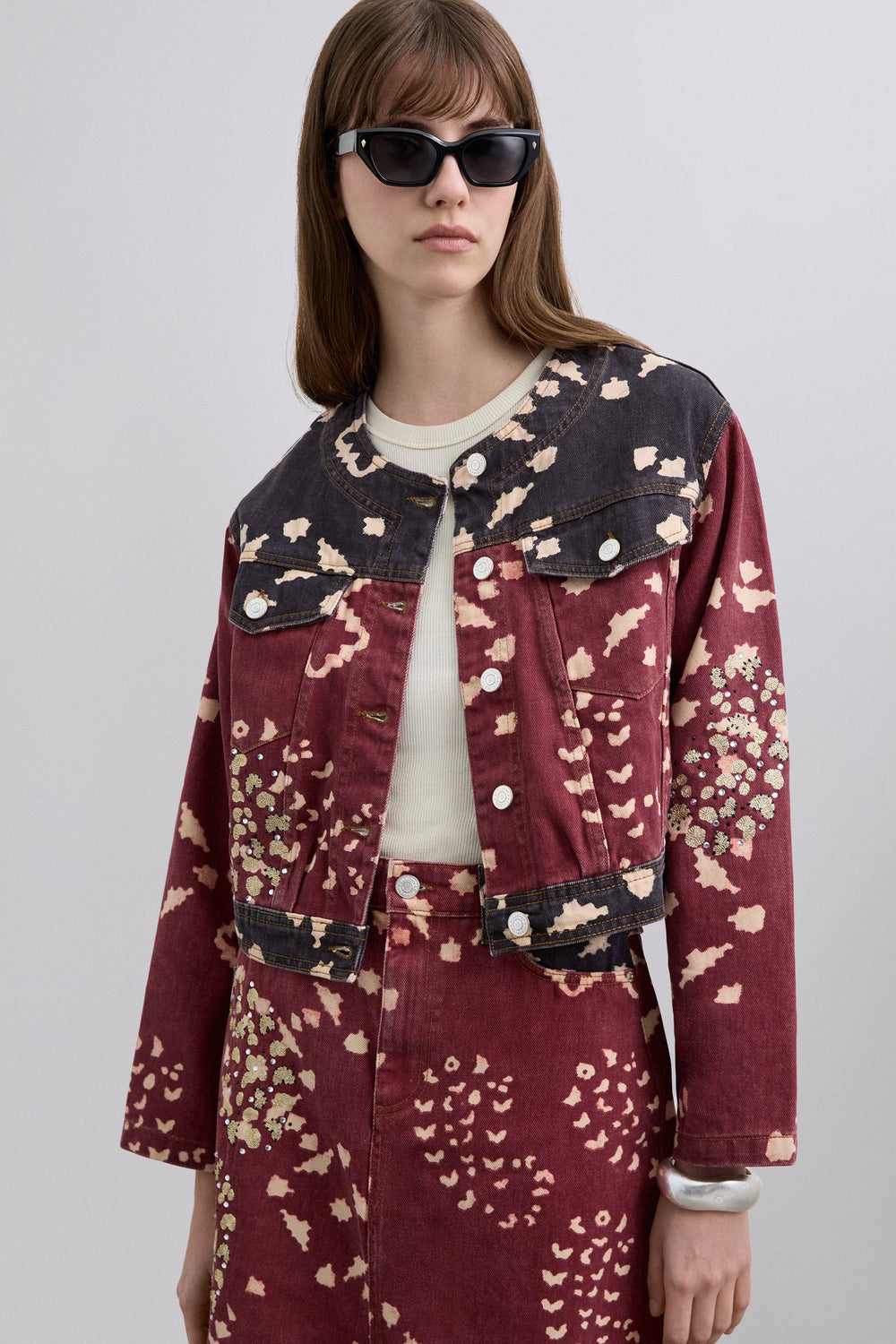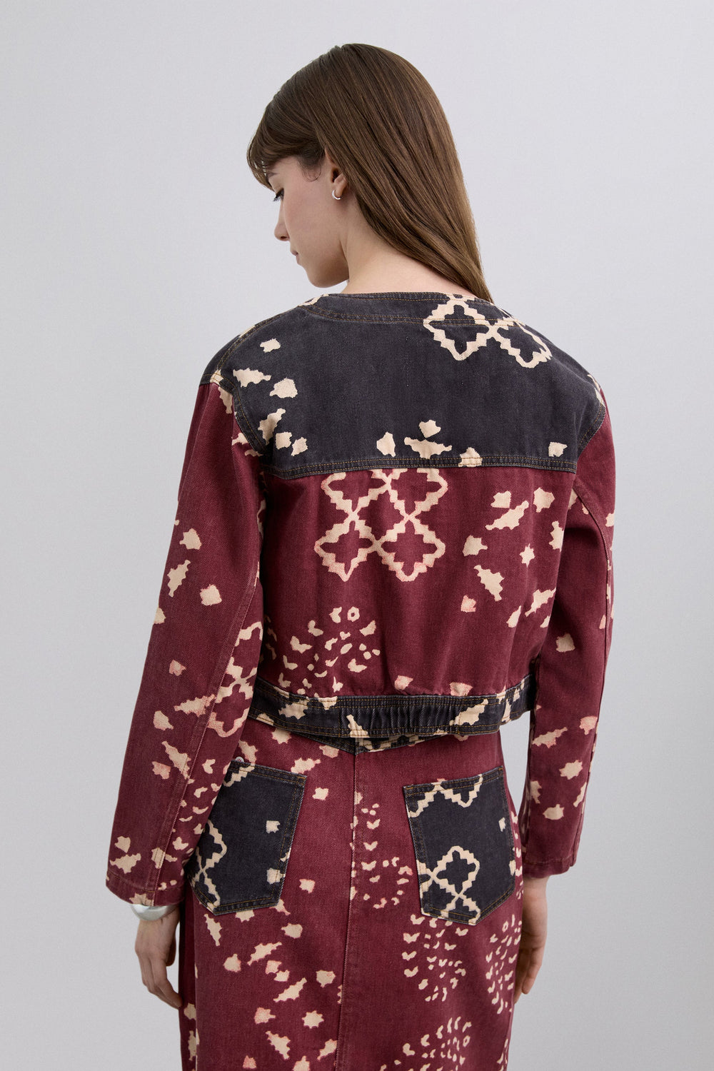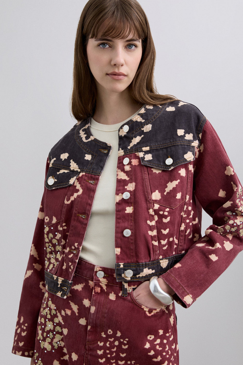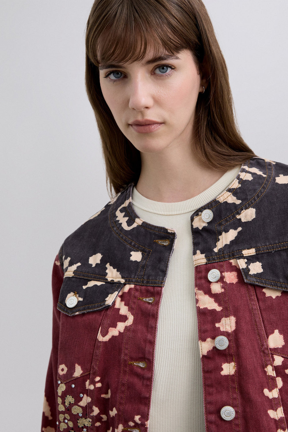 Denimhemd aus 100 % BCI-Baumwolle mit doppeltem Print. Rundausschnitt ohne Revers. Lange Ärmel. Pattentaschen vorne. Patte mit Druckknöpfen vorne.