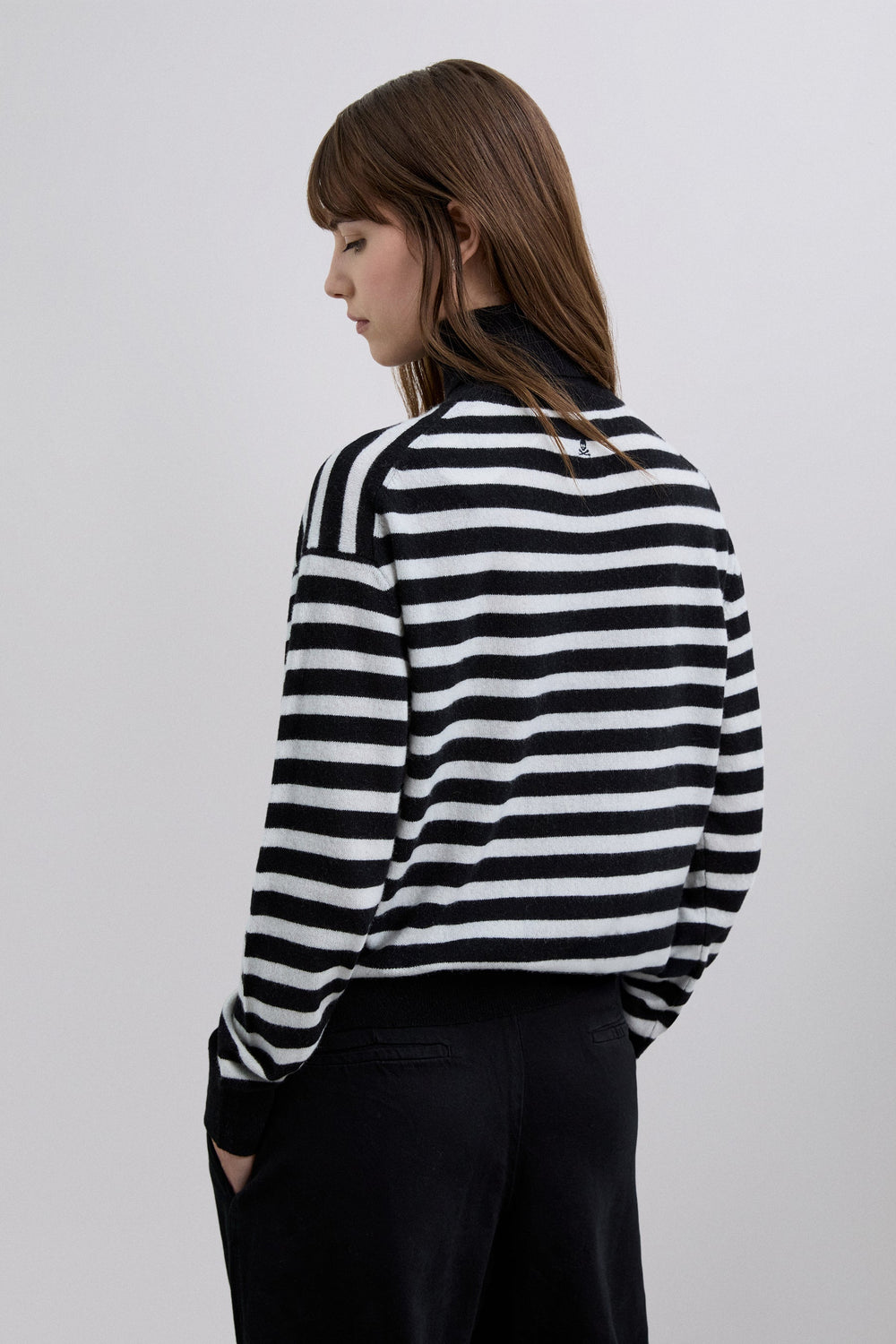 Pullover aus Wollmischgewebe. Regular Fit. Umgeschlagener Kragen. Lange Ärmel. Mit farblich passender Totenkopfstickerei hinten.