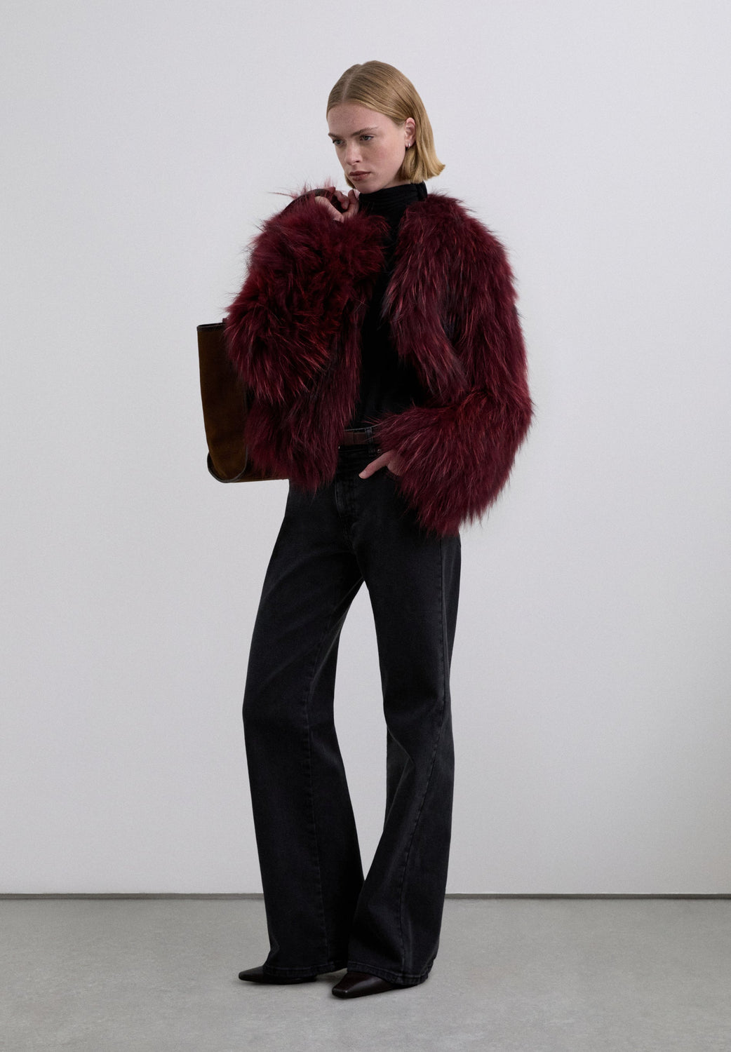 Jacke aus 100 % natürlichem Waschbärfell. Lange Ärmel. Mittellanger Schnitt bis zur Hüfte.