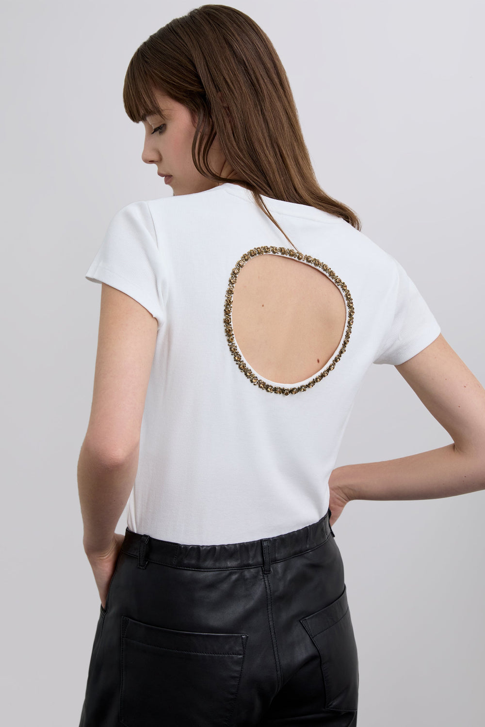 T-SHIRT SCHLITZ MIT STRASSBESATZ