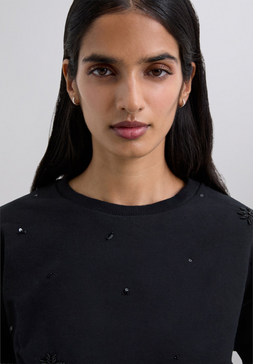 Sweatshirt aus 100% Baumwolle mit Strassstickerei. Regular Fit. Rundausschnitt und Langarm mit Patentbündchen.
