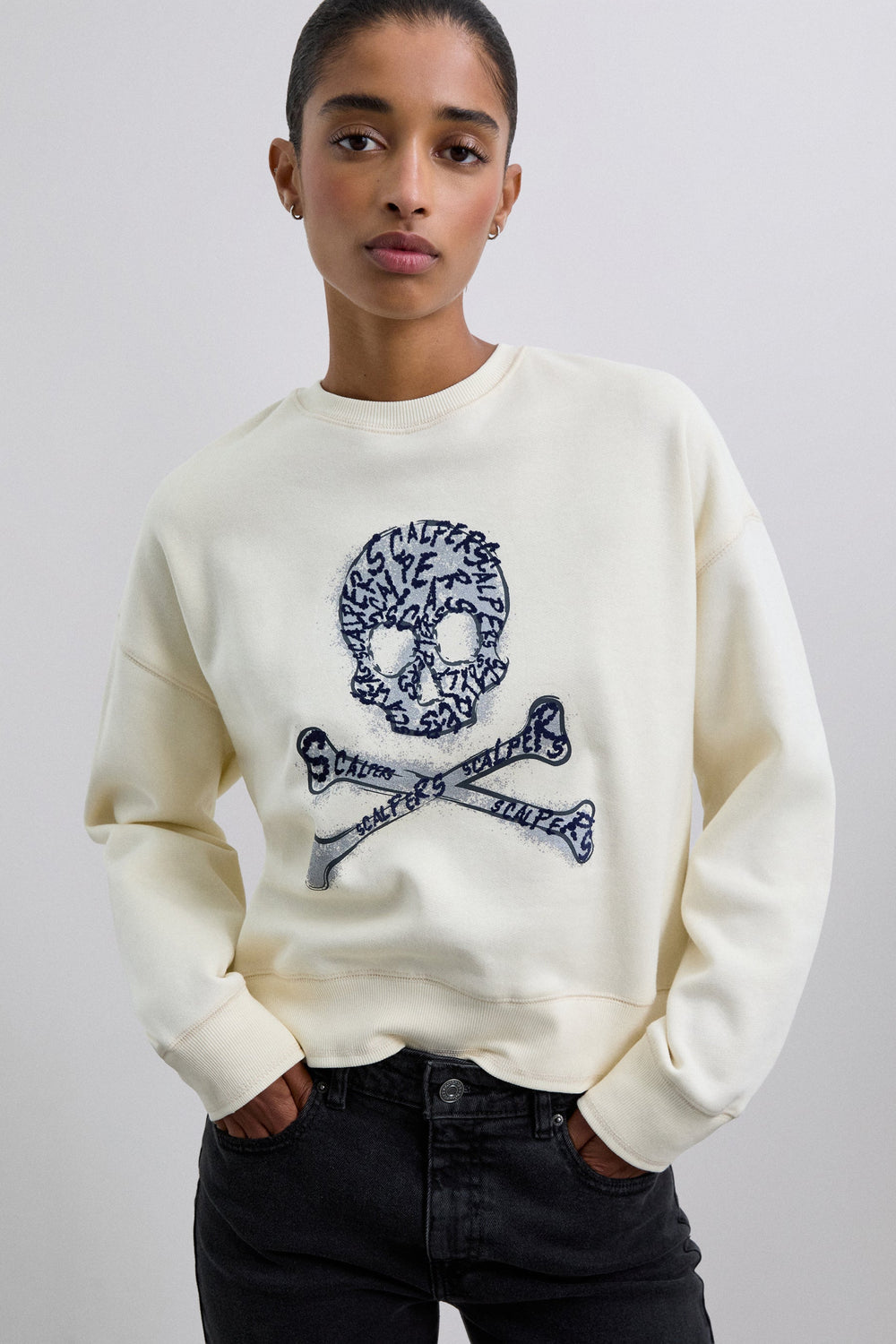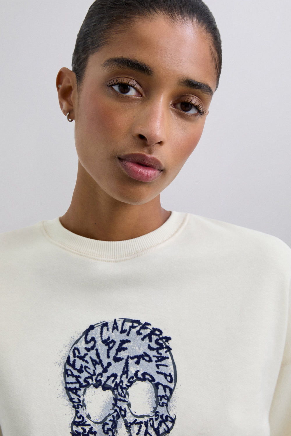 Hoody aus 100 % ökologisch hergestellter Baumwolle. Regular Fit, Rundausschnitt und lange Ärmel mit Patentbündchen. Totenkopf mit Flock-Print vorne.