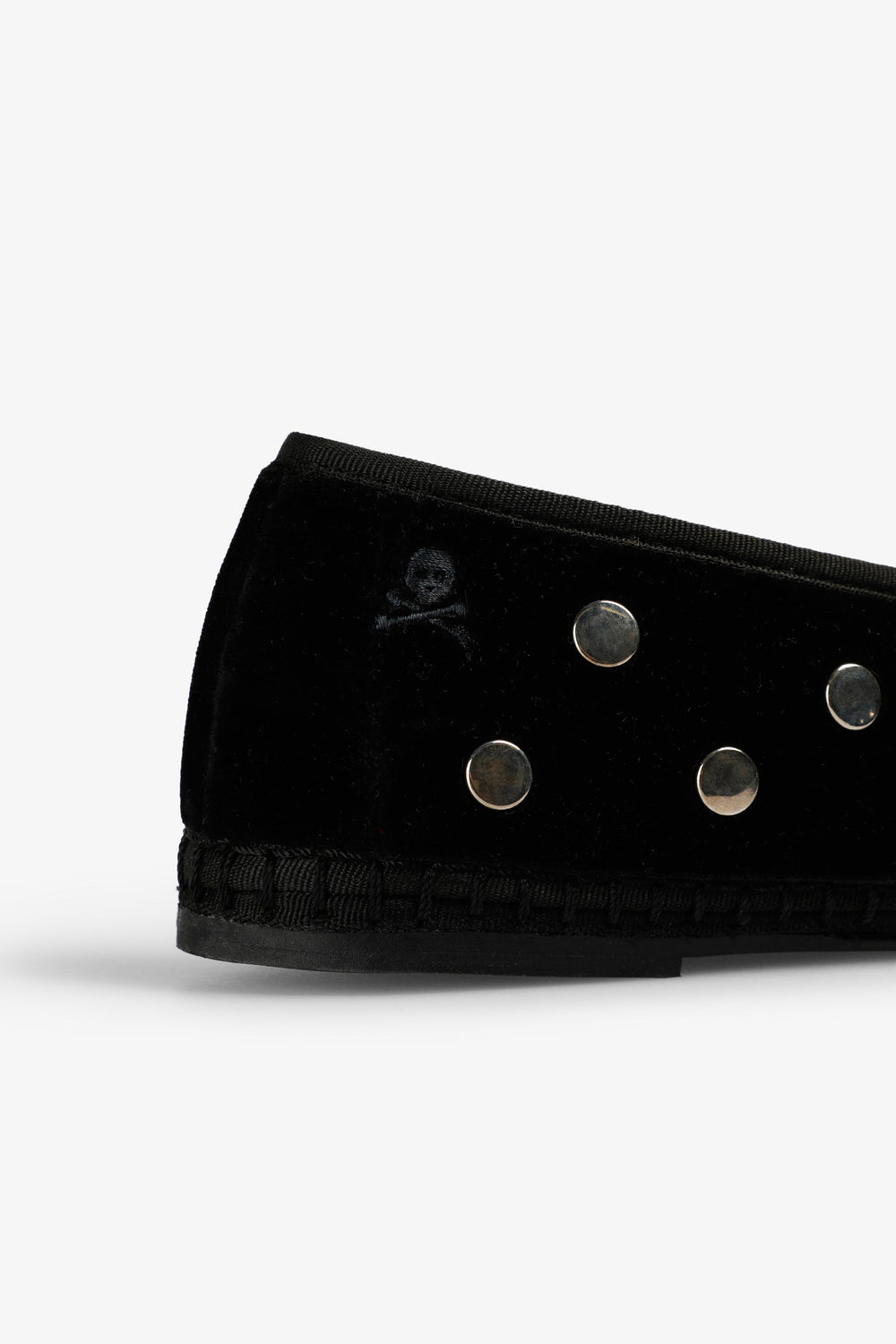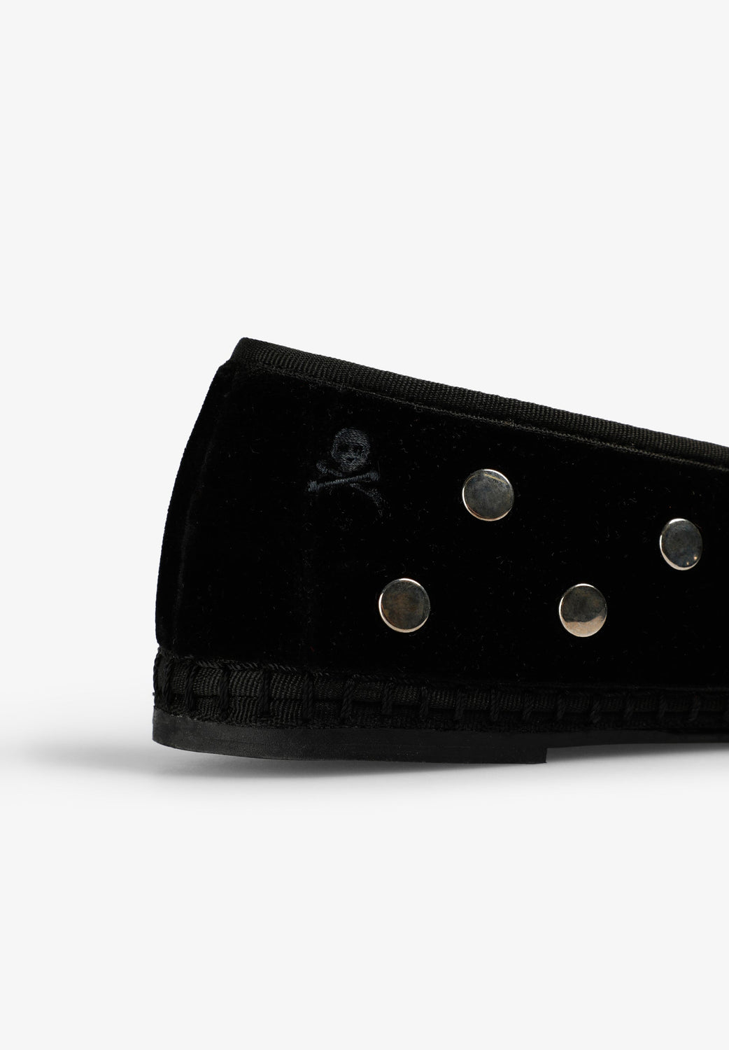 Ballerinas aus 100 % BCI-Baumwolle. Samtig. Mit Nieten. Innenfütterung aus Baumwolle. Farblich passende Logo-Stickerei.