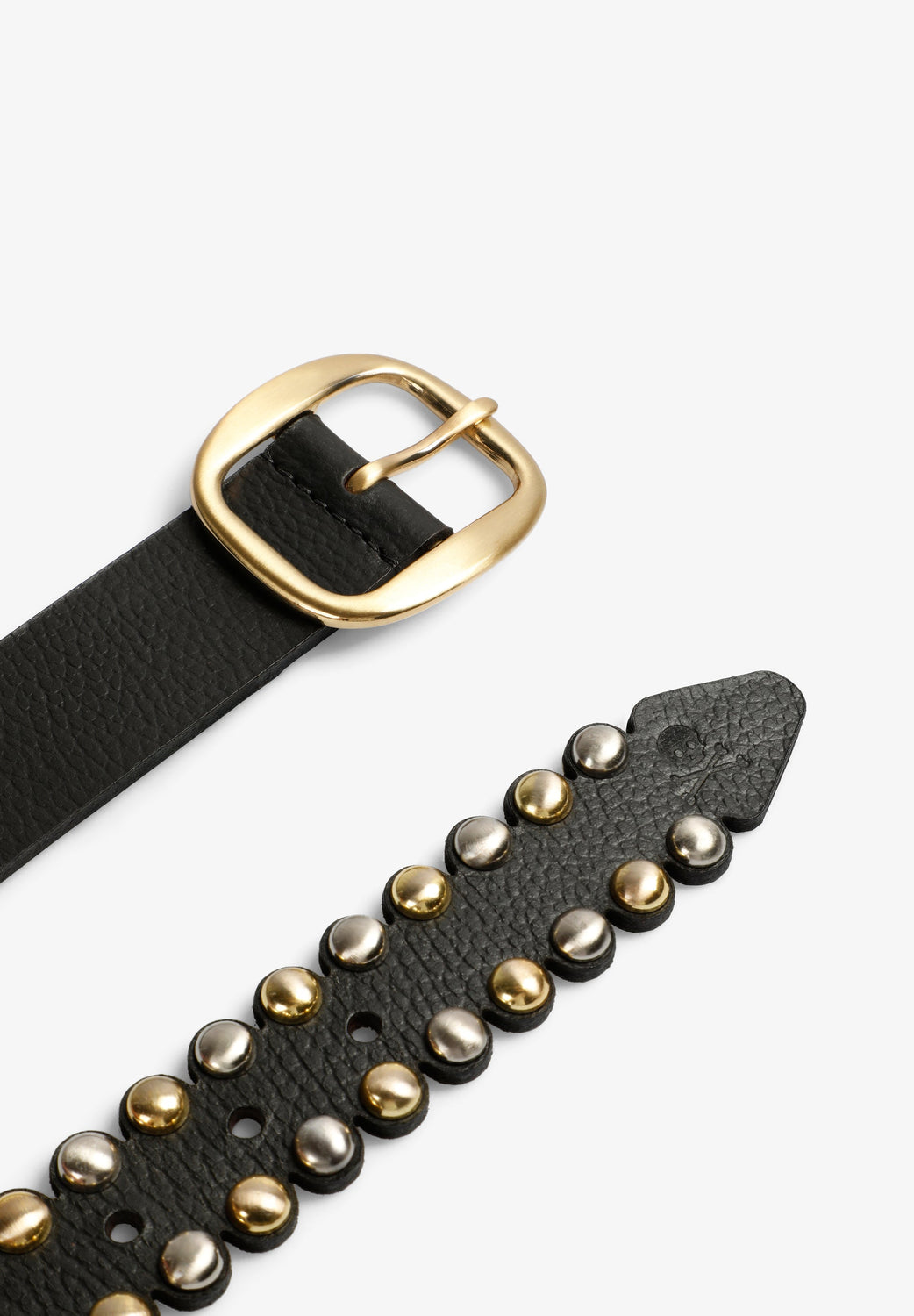 Gürtel aus 100 % Leder. Logo-Print. Goldfarbene Schnalle und silber- und goldfarbene Nieten.