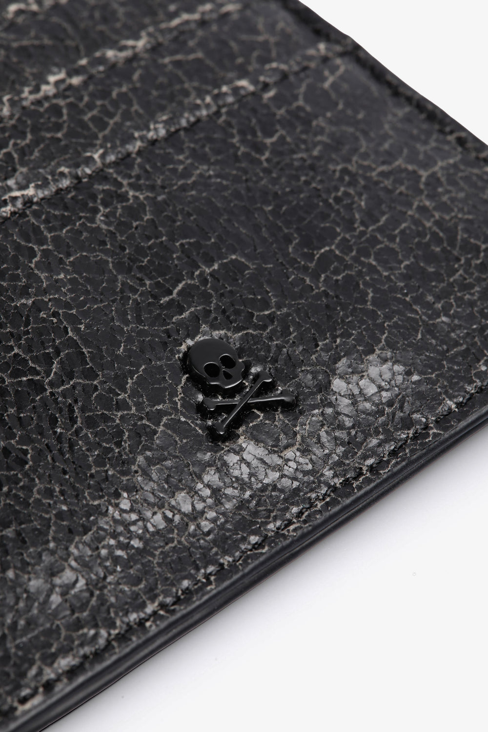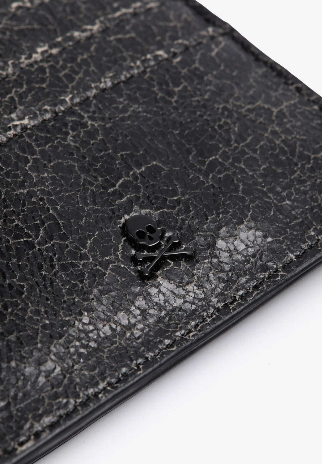Brieftasche mit Animal-Print-Textur. Metallic-Totenkopf vorne.