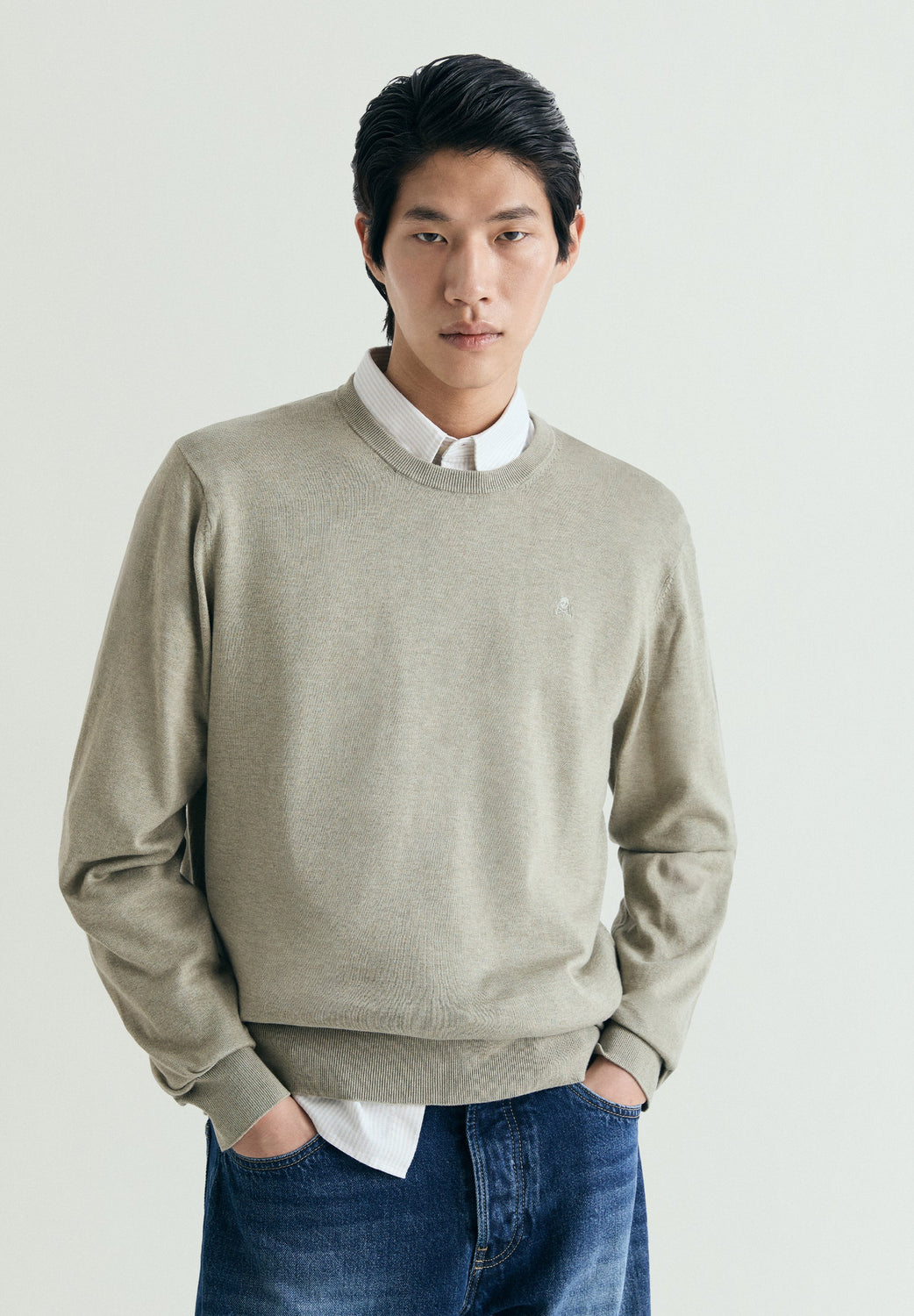 Pullover aus 100 % hochwertiger Supima-Baumwolle. Rundausschnitt. Farblich passende Totenkopf-Stickerei auf der Brust. Enden aus Rippstoff.