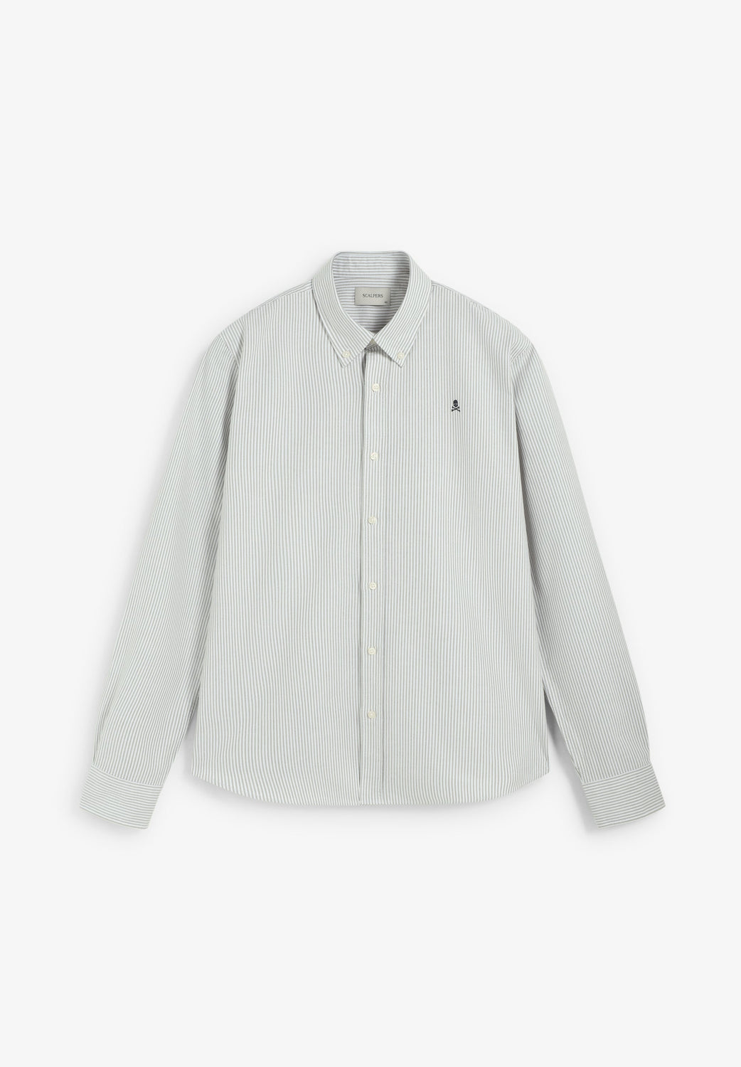 Oxfordhemd aus 100 % BCI-Baumwolle. Knopfleiste. Streifen-Print Lange Ärmel. Geknöpfte Manschetten. Farblich abgesetzte Totenkopf-Stickerei auf der Brust