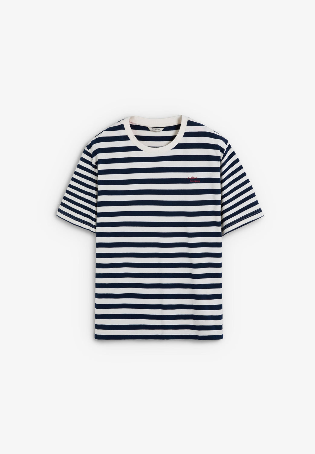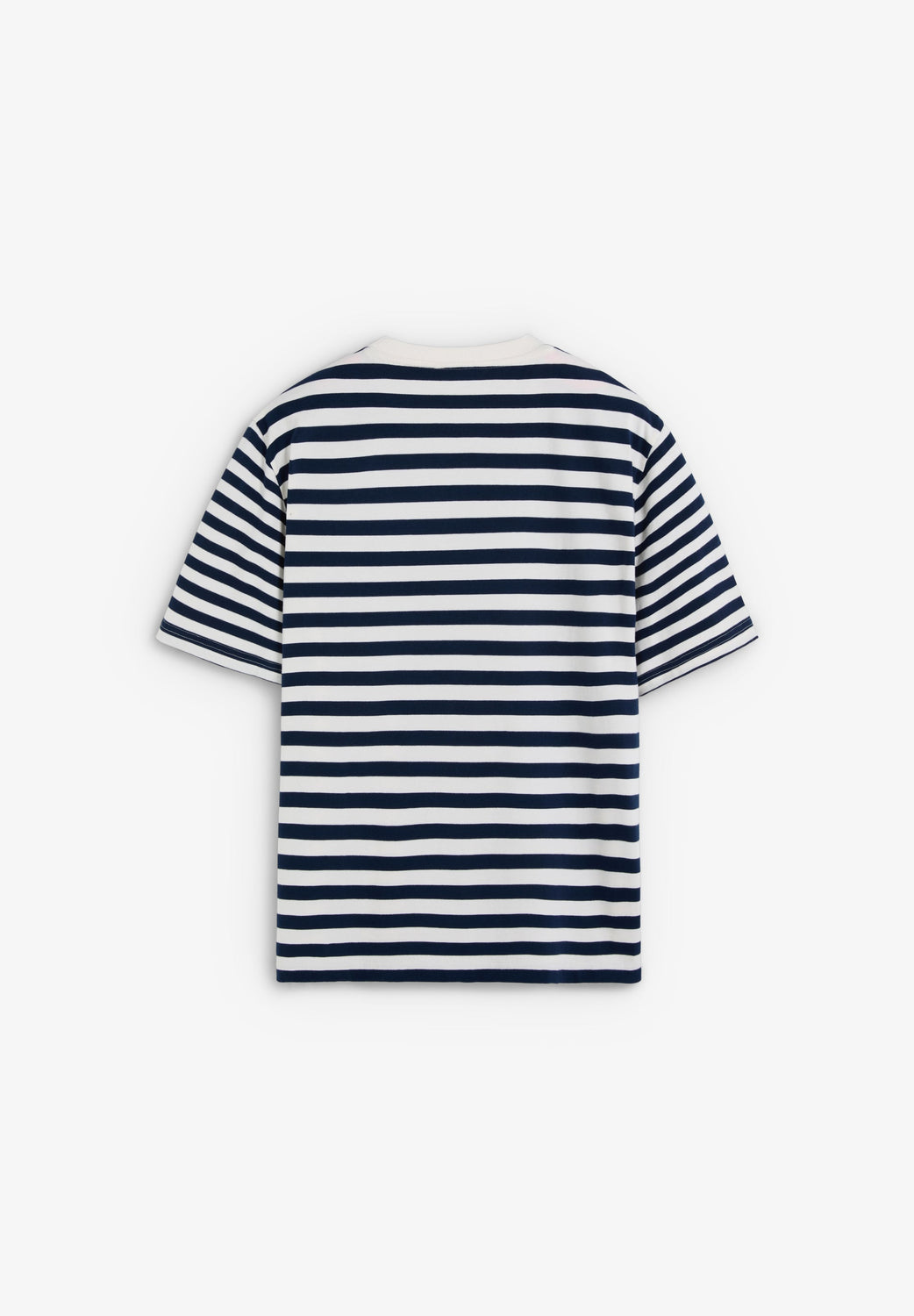 T-Shirt aus 100 % BCI-Baumwolle. Boxy Fit. Farblich abgesetzter Rundausschnitt und kurze Ärmel. Streifen-Print. Stickerei auf der Brust.