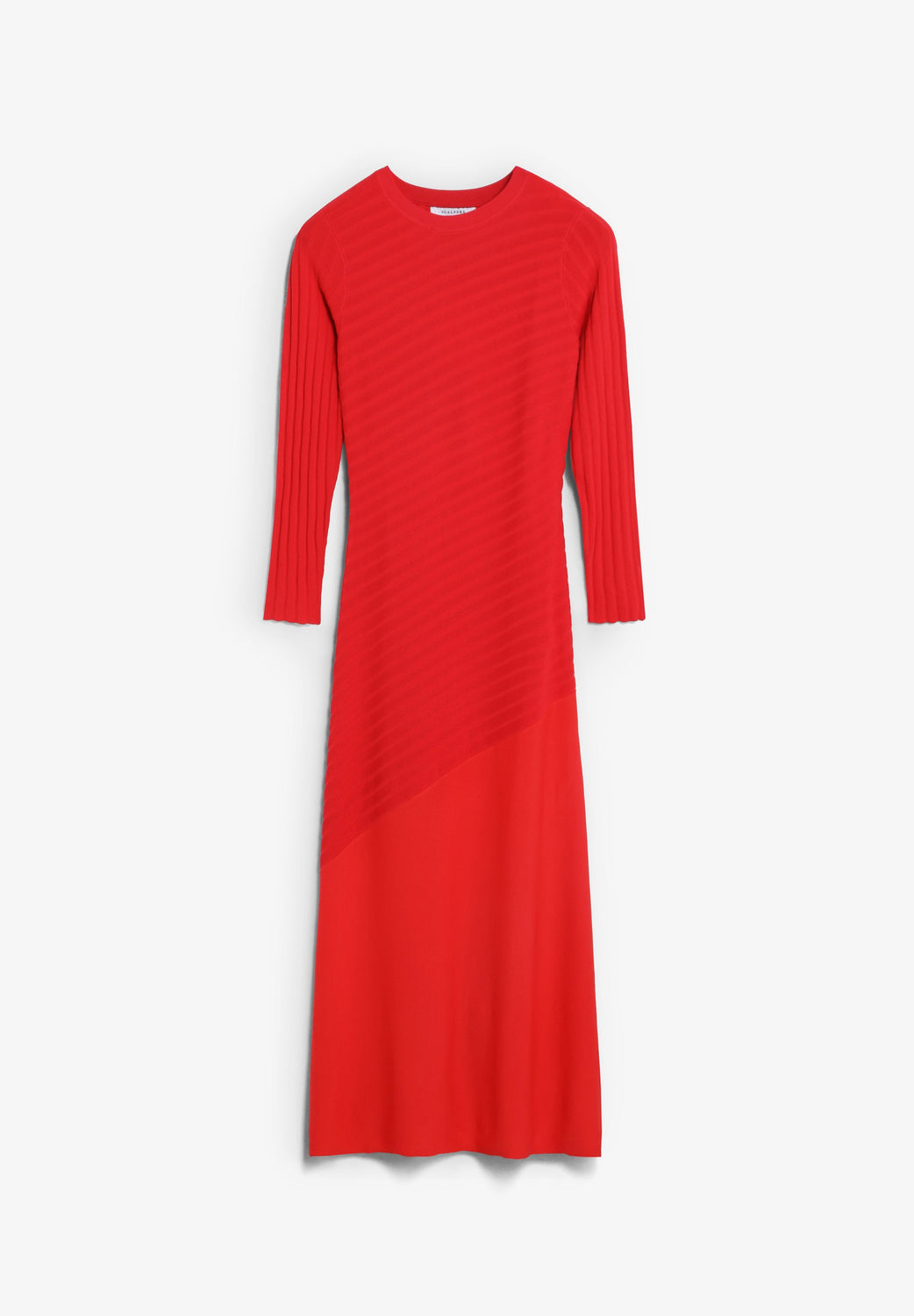 Kleid aus leicht elastischem Strick mit farblich abgesetzten Strick-Details mit einfarbigem Streifen-Print. Slim-Fit, Rundausschnitt und lange Ärmel.