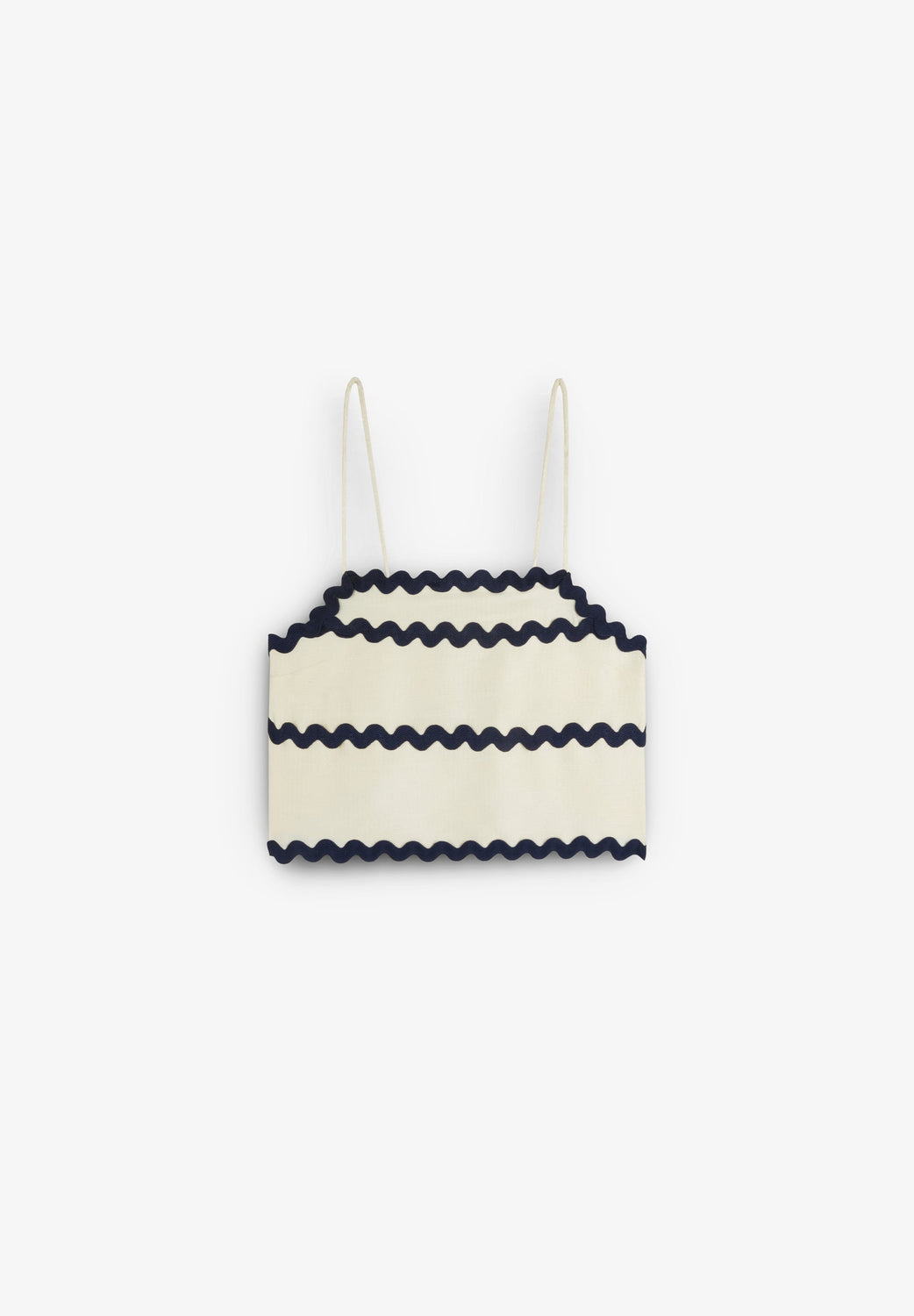Top mit schmalen Trägern und geradem Ausschnitt. Farblich abgesetzte Wellen. Cropped-Fit.