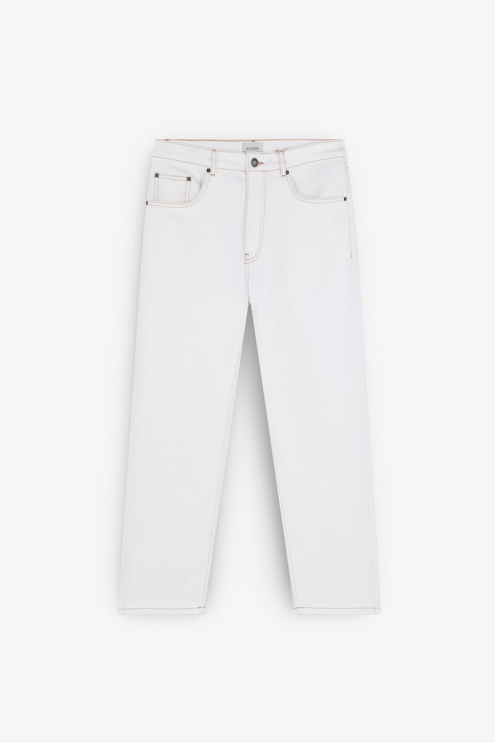 Jeans aus Baumwollmischgewebe. Cropped-Länge, Seiten- und Gesäßtaschen und Verschluss durch Reißverschluss mit Knopf. Gürtelschlaufen am Taillenbund.