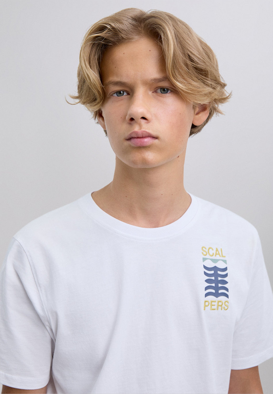 T-Shirt aus 100 % BCI-Baumwolle. Regular-Fit, kurze Ärmel und Rundausschnitt. Print vorne und farblich abgesetzter Print unten rechts an der Seite mit Logo-Stickerei.