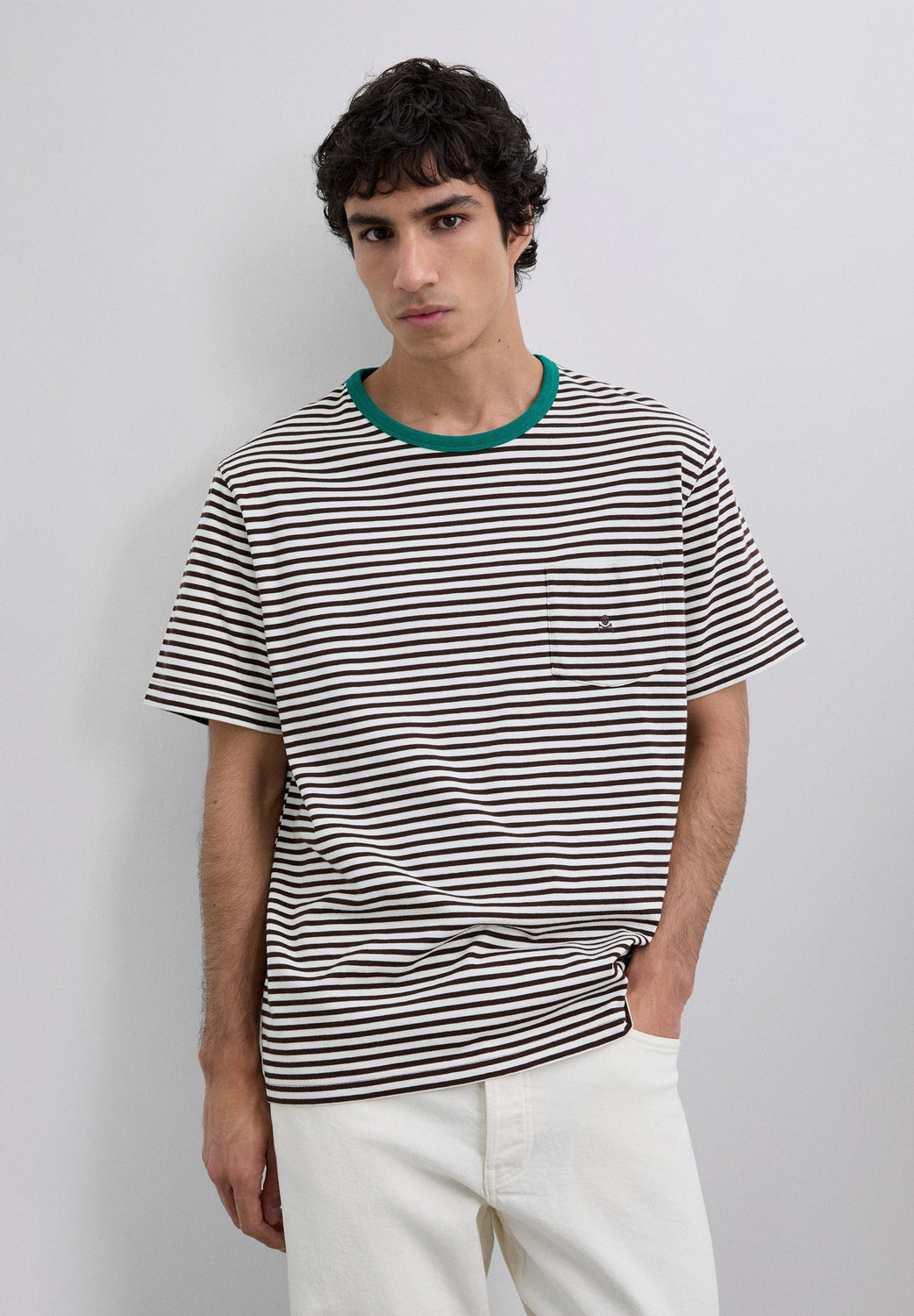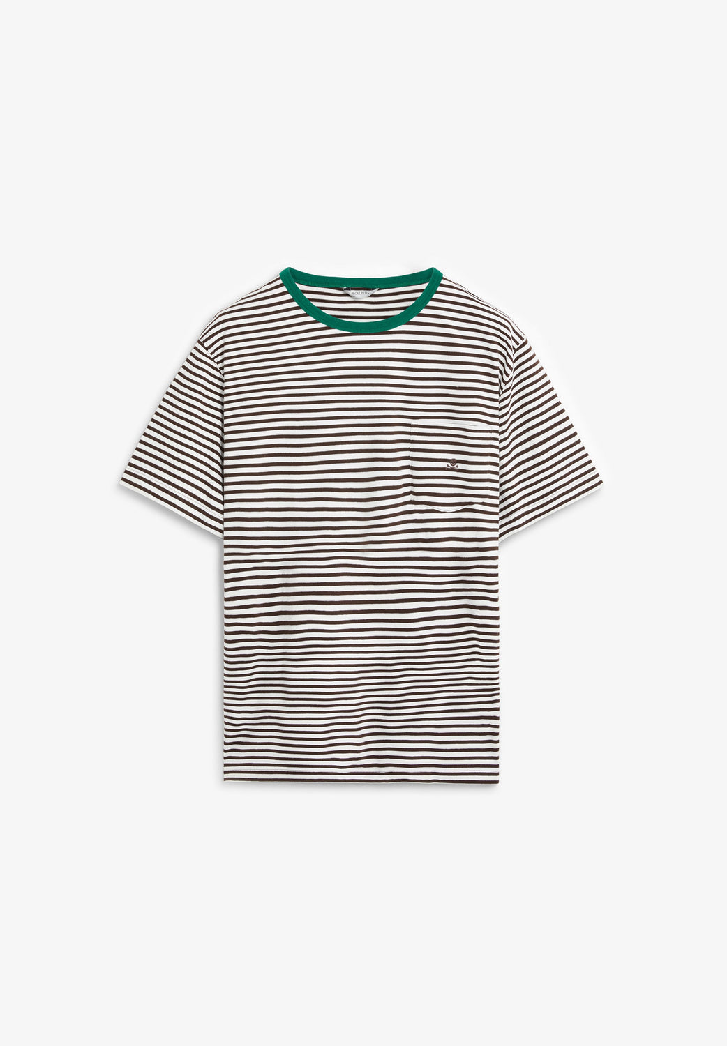 T-Shirt aus 100 % BCI-Baumwolle. Streifen-Print. Kurze Ärmel. Farblich abgesetzter Rundausschnitt. Brusttasche. Mit Totenkopf-Stickerei.