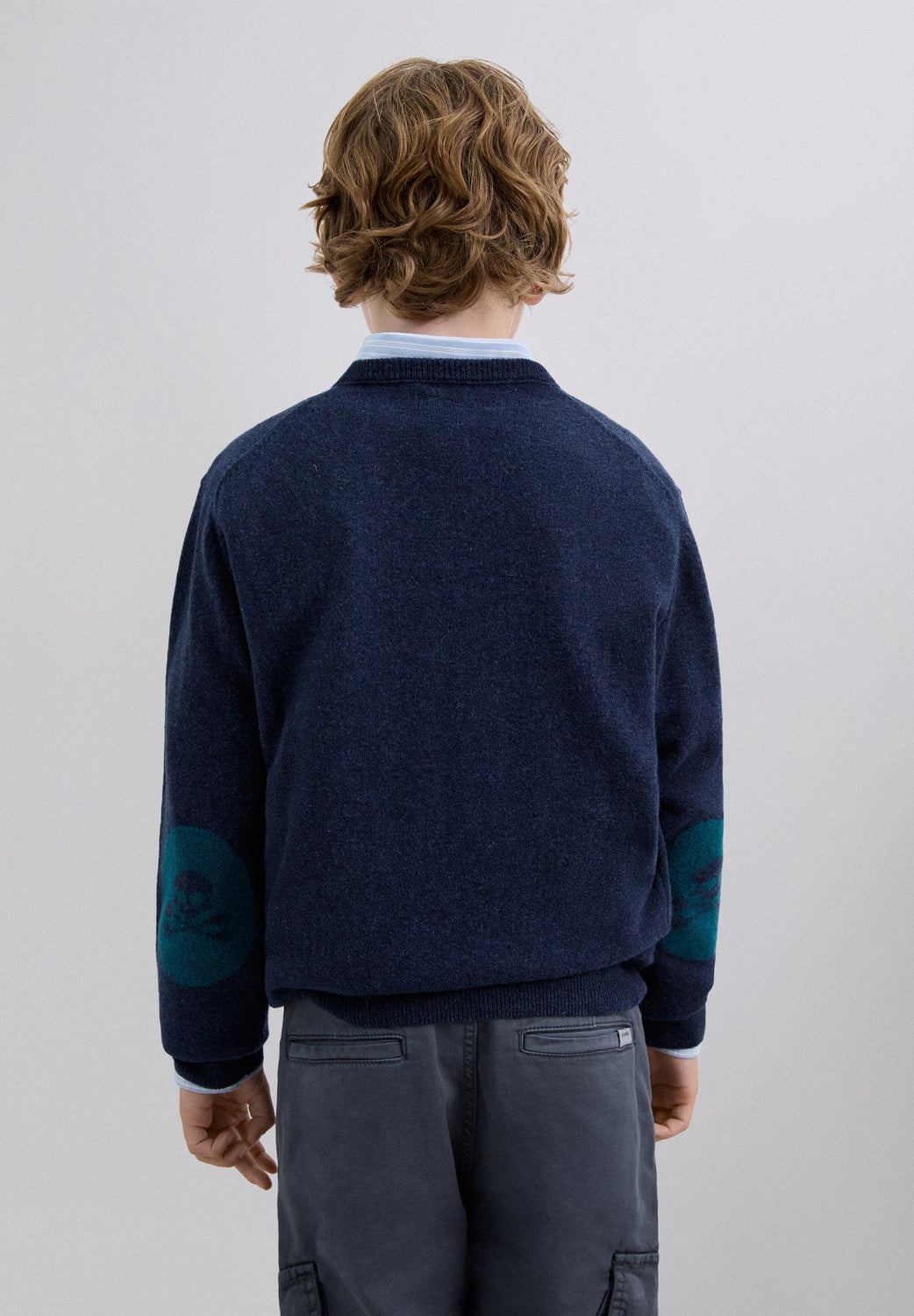 PULLOVER MIT ELLBOGENSCHONERN MIT TOTENKOPF