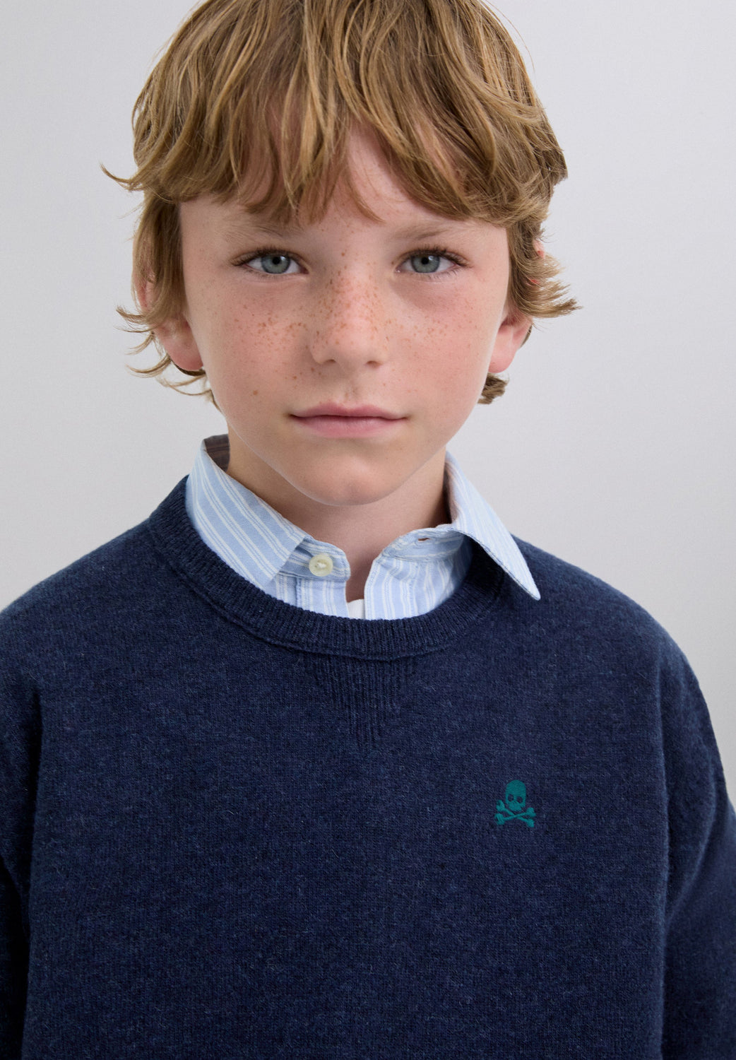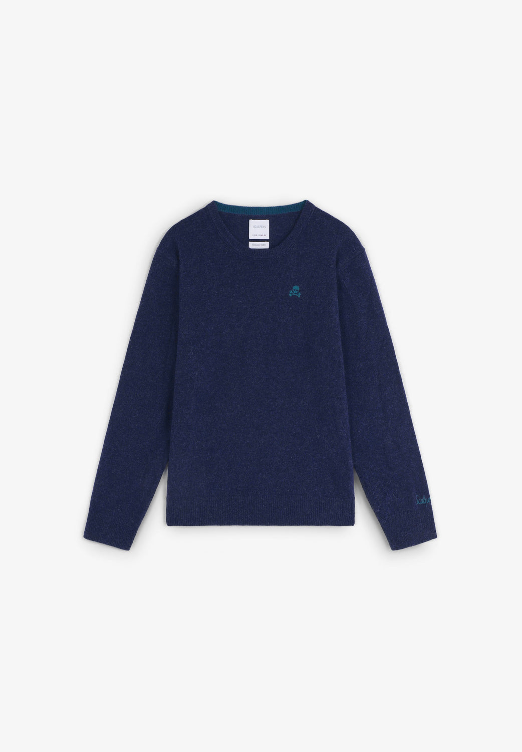 Pullover mit farblich abgesetzten Totenkopf-Ellbogenschonern. Aus Wollgemisch. Regular Fit. Rundausschnitt. Lange Ärmel. Mit Totenkopf auf der Brust