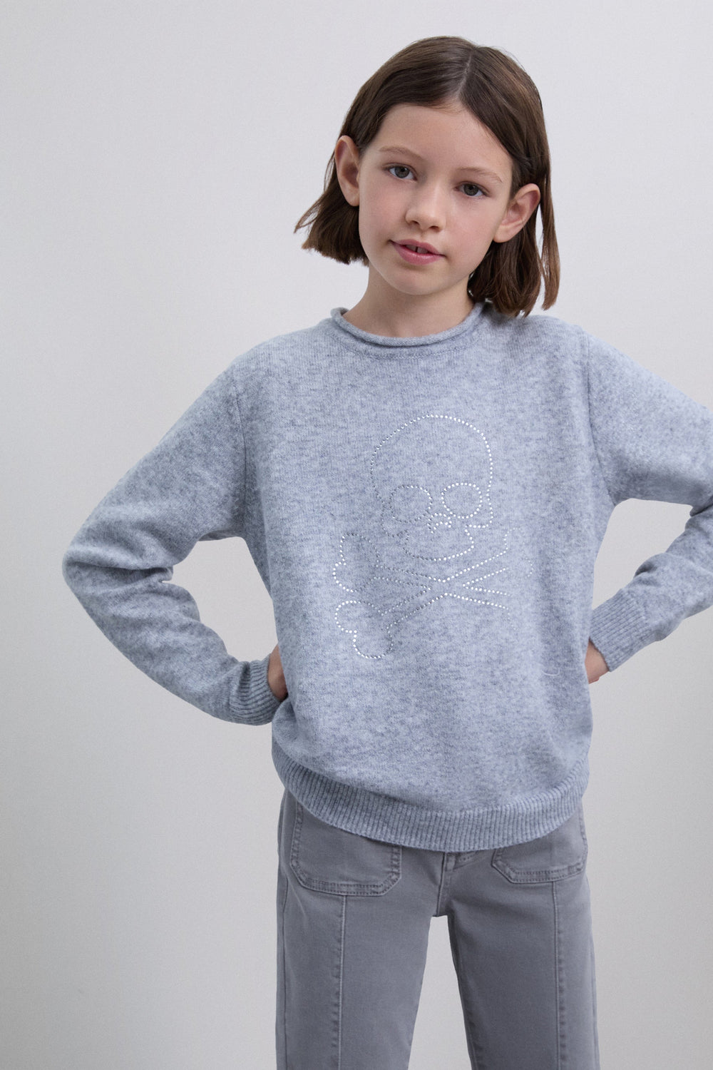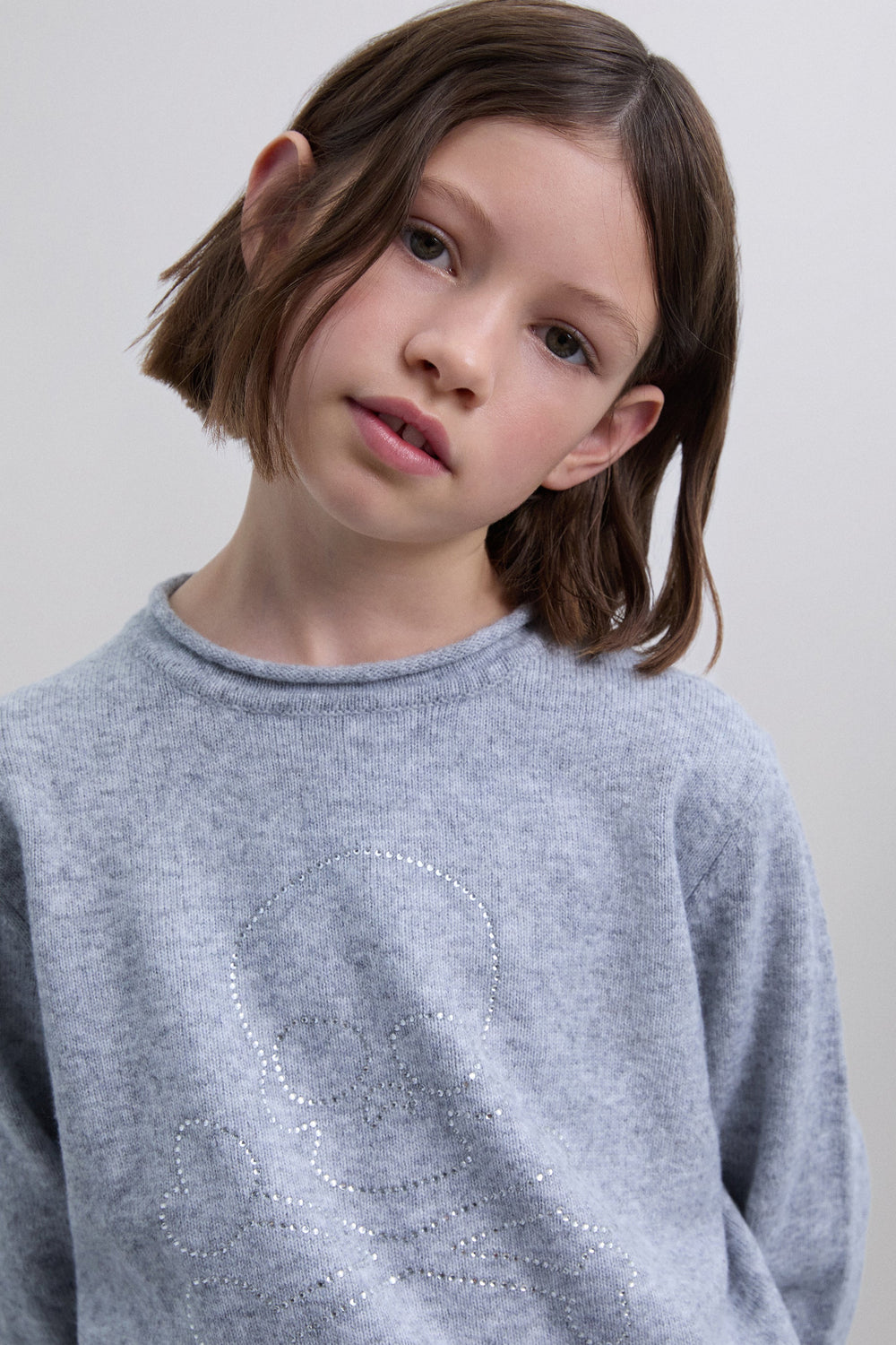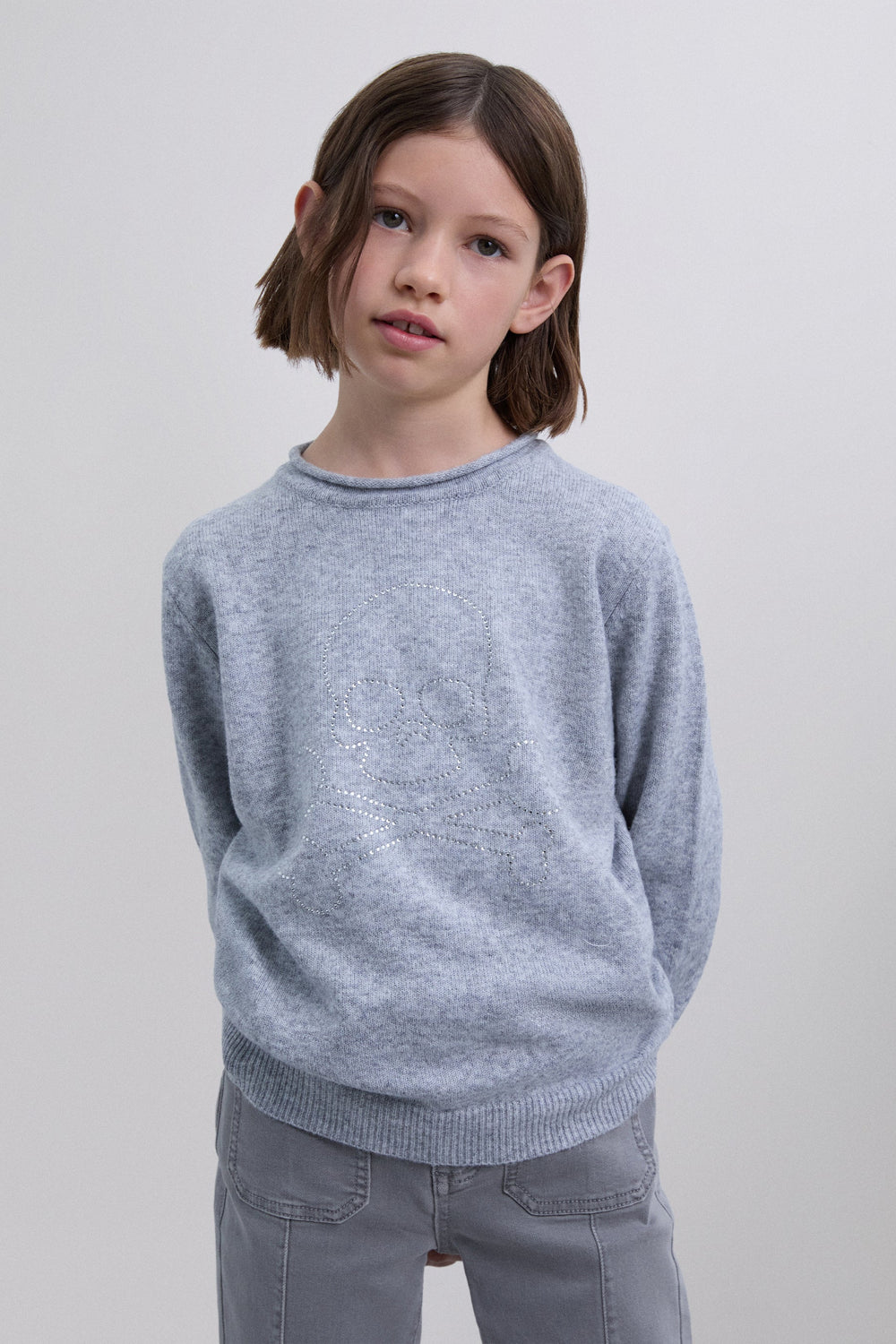 Pullover mit Synthetik und Logo-Print mit Strass. Rundausschnitt mit farblich passendem Patentbündchen. Ärmel und Saum mit Bündchen.
