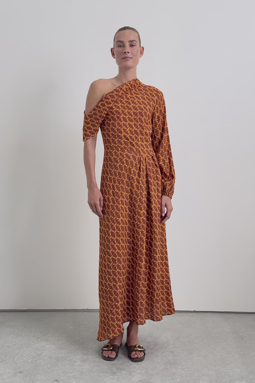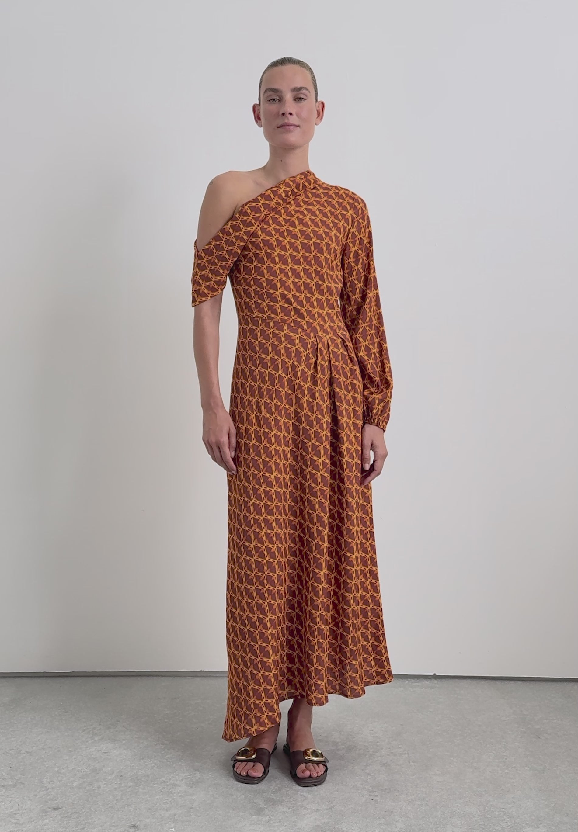 KLEID MIT PRINT UND ASYMMETRISCHEM AUSSCHNITT