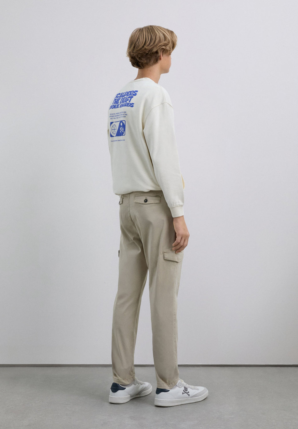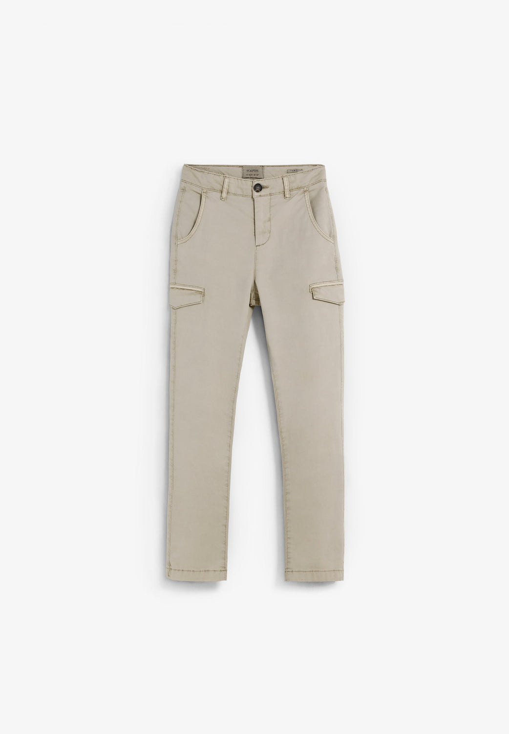 Cargohose aus leicht elastischer BCI-Baumwolle. Regular Fit. Verschluss durch Reißverschluss mit Knopf. Taschen vorne und Gesäßtaschen. Gürtelschlaufen und Pattentaschen am Hosenbein.