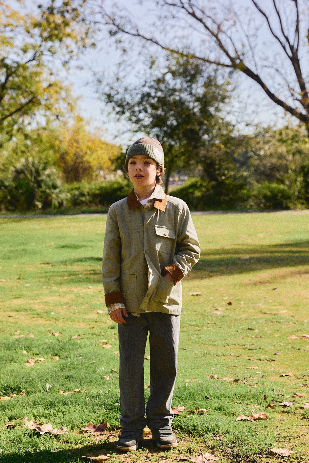 Straight corduroy trousers made of a slightly stretch cotton blend fabric Button closure. Front and back slanted pockets. Back label detail with logo.